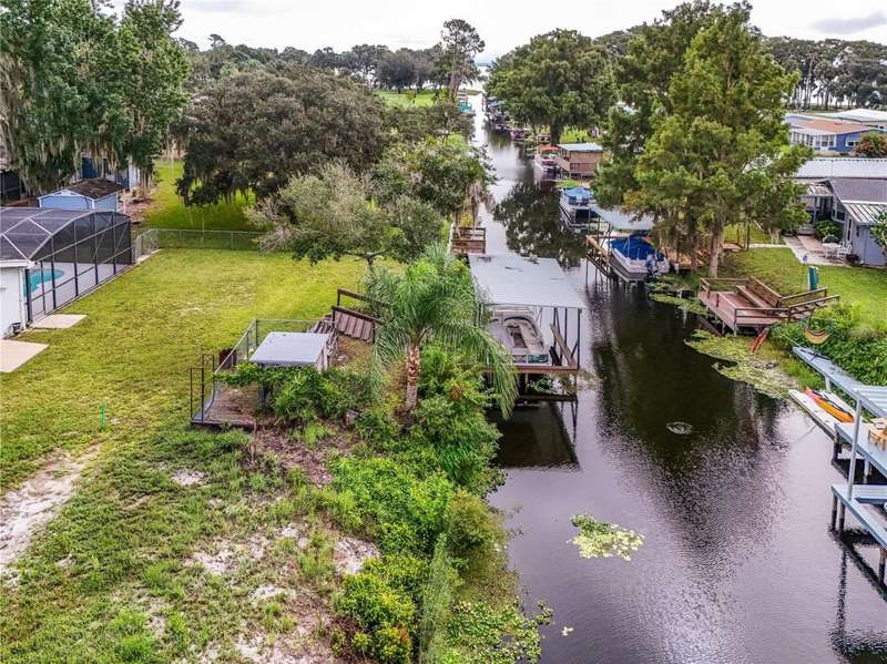 How would you like to own a property with direct access to the Chain of Lakes for under $400K? Here is your chance!This diamond is not in the rough. Located on the canal that leads straight to Lake Eustis. Hop on your boat that is stored in your recently constructed, covered boat dock and head to supper at a nearby lakeside restaurant. Enjoy your morning coffee by the pool and take that swim to get the day started. This 4 bedroom, 2 bath home has soaring ceilings that add to the elegance of daily life. Use your space as you like. Extra bedrooms and a bonus area are awaiting a living room, playroom or craft room. The beautiful yard is maintained by irrigation which is provided by the canal which saves you money.A handy kitchen with a host of cabinets and storage, makes large gatherings a breeze as it is open to the eat in kitchen and has easy access to the large formal dining area. Plenty of parking for all of your guests.The oversized garage is amazing. Dual doors that allow for drive-through, make dropping that trailer, bike or other toys so convenient. A huge primary bathroom is a dream and this place has it. If you want to get away from the hustle and bustle of traffic, this is your own little paradise. Just a short drive to the nearby, quaint towns of Leesburg, Mount Dora and Eustis. A little over an hour to Orlando, Disney and Universal attractions. Only an hour and 20 minutes to the beach. Make your appointment today to see this property.A/C, 2006Roof, 2018Boat house, 24 X 13Boat on property does not convey.