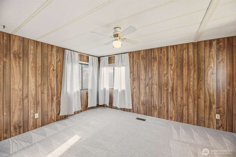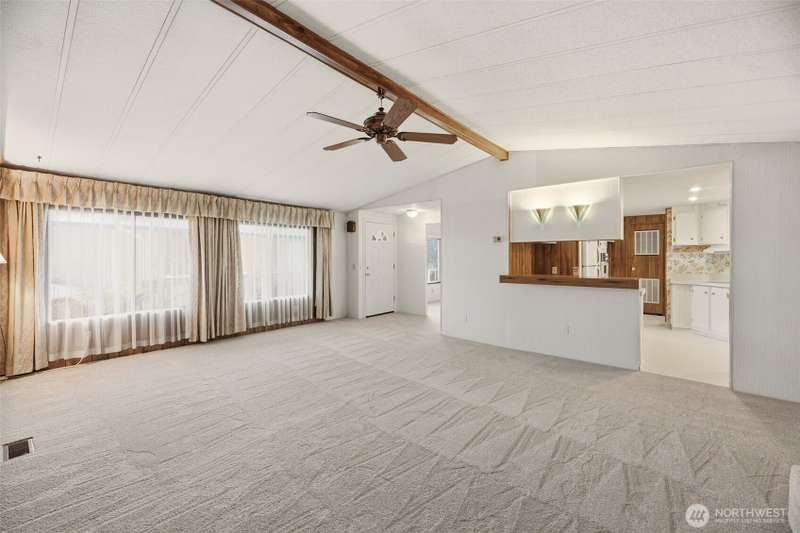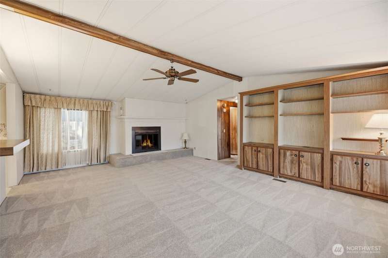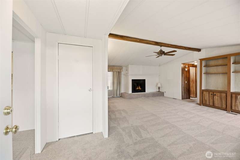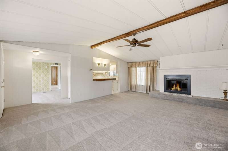 Welcome to this desirable 55+ community offering a relaxed, low-maintenance lifestyle. This spacious home features 2 beds plus an office, 2 full baths, dining room, and a large family room with a cozy fireplace—perfect for gatherings or quiet evenings at home. The home blends charming vintage details with thoughtful updates, including new carpet and vinyl flooring throughout.Step outside to a covered front deck, ideal for enjoying your morning coffee or chatting with neighbors. There’s also extra storage off the carport for added convenience. Enjoy great amenities, including a clubhouse and pool, while living close to public transit, grocery stores, and everyday conveniences. Bring your design ideas and make this charming home yours today!