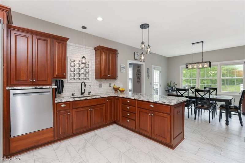 Move-In Ready 4-Bedroom Ranch in Hiram Township, OH ? Multi-Generational Living with Walk-Out Lower LevelWelcome to this impeccably maintained 4-bedroom, 3-bathroom ranch-style home in Hiram Township, Ohio, minutes from the charming village of Garrettsville. Offering single-level living with the bonus of a partially finished walk-out lower level, ideal for multi-generational families.Step inside and find a bright and welcoming foyer with new oak hardwood floors that flow seamlessly into the formal living and dining rooms. The updated eat-in kitchen features cherry cabinetry, granite countertops, marble backsplash, and porcelain tile floors?complete with Frigidaire appliances and a sleek range hood. Perfect for entertaining, the kitchen opens to a TimberTech deck designed for grilling, gatherings, and relaxing outdoors. The formal living room has pocket French doors, while the cozy family room boasts a wood-burning fireplace and a covered deck for your enjoyment. Convenient first-floor laundry includes storage, granite counters and LG front-load washer/dryer.Primary suite with walk-in custom closet and private bath. An additional main-floor bedroom has attached full bath and an office complete the first floor. Upstairs enjoy a finished bonus bedroom?great for guests or rec space. Lower level offers a large bedroom and full bath plus an unfinished space for storage, a home gym or whatever your heart desires. Enjoy a beautifully landscaped yard with multiple decks and patios, TimberTech decking, new plantings, paver walkway, and retaining wall. A 3-car attached garage with a wood-burning stove plus a brand-new 12x16 storage shed provide plenty of space for vehicles, tools, and equipment.Updates include: Generac generator, hot water tank, radon mitigation system, reverse osmosis filtration systemMeticulously maintained ranch home in Northeast Ohio with flexible living spaces and modern upgrades, this property is a must-see. Motivated Seller