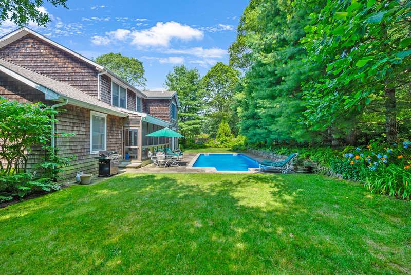 Rental Reg. #24-616. Lovely four bedroom home with heated pool and all the amenities. The house is situated on a quiet cul-de-sac right between the village of East Hampton and Amagansett. All bedrooms are en-suite! The pool has a safety fence, perfect for security. The house is well maintained with a professional kitchen, central air conditioning and landscaped grounds. Listing ID:743193