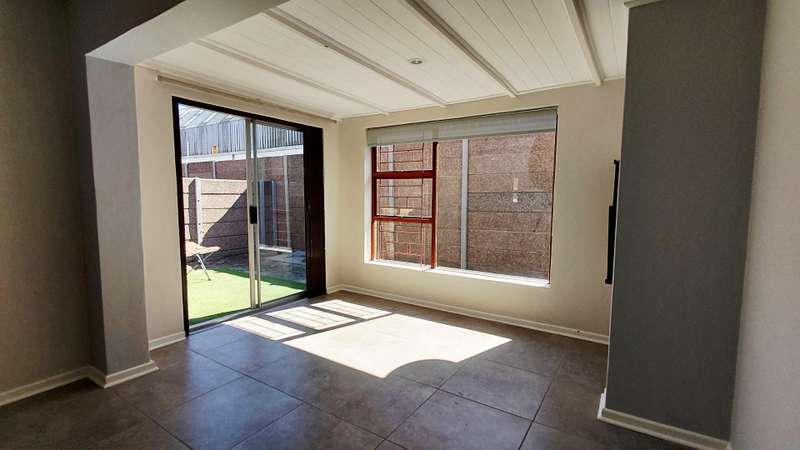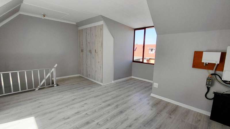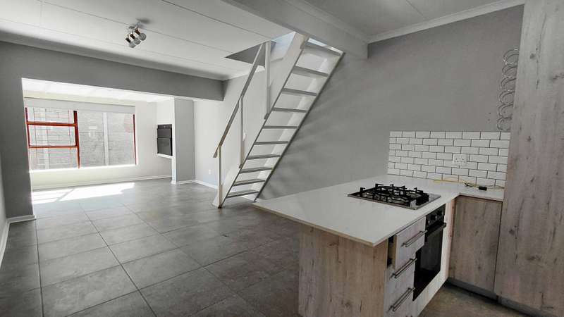 This charming 2-bedroom townhouse offers a welcoming open-plan layout, combining the kitchen and living area with a built-in braai for effortless entertaining. A spacious loft adds versatility, perfect for a home office, guest room, or creative space. The home includes one bathroom, a private garden, and both a covered and uncovered parking space for convenience. Modern sustainability features such as an inverter and gas hobs ensure comfort and efficiency. With its fresh look and feel, this property is ideal for those seeking low-maintenance living in a well-designed space. Please note: not pet friendly.