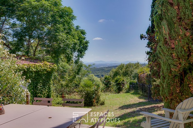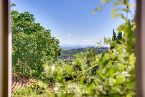 Outside, the wooded and carefully maintained garden creates spaces for relaxation and conviviality: generous lawn, ornamental trees, hedges preserving privacy, not to mention the swimming pool: Its panoramic view of the hills and the Pyrenees in the background completes this peaceful setting.