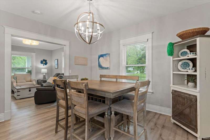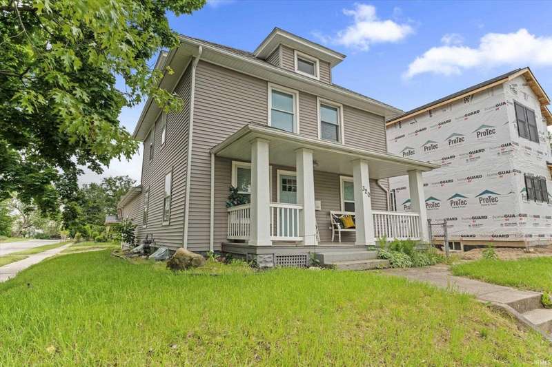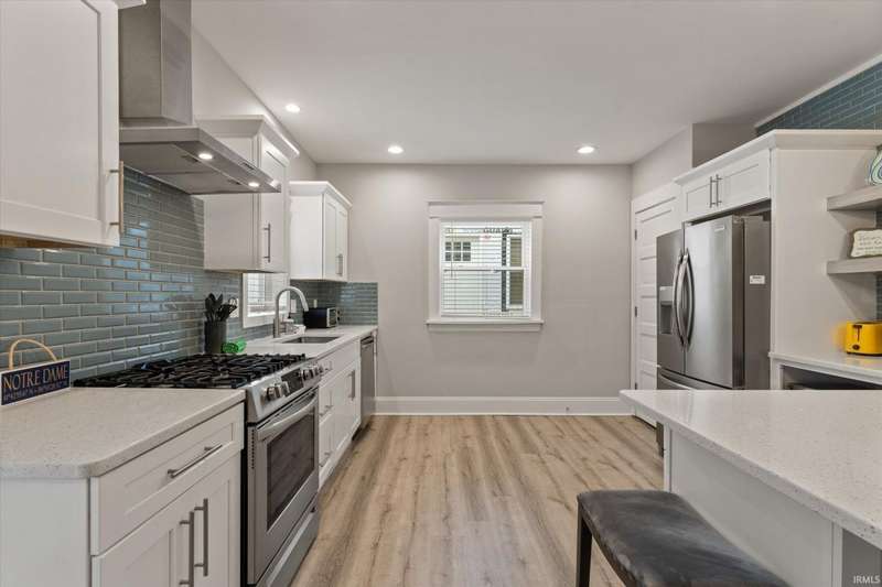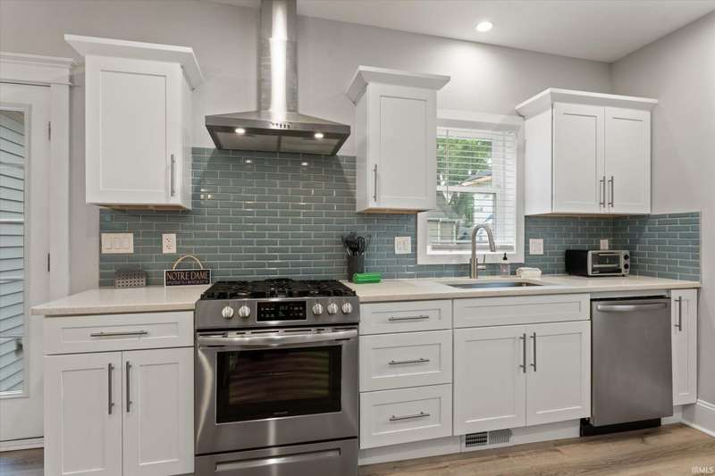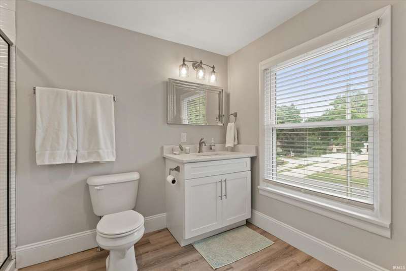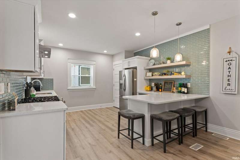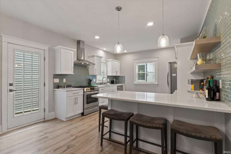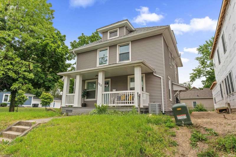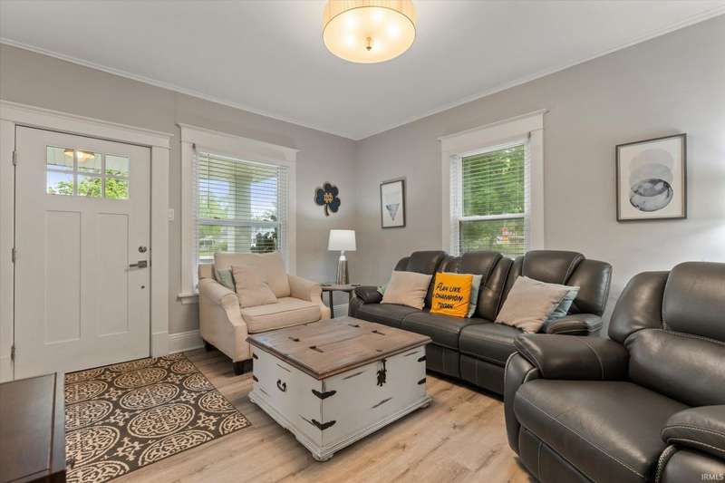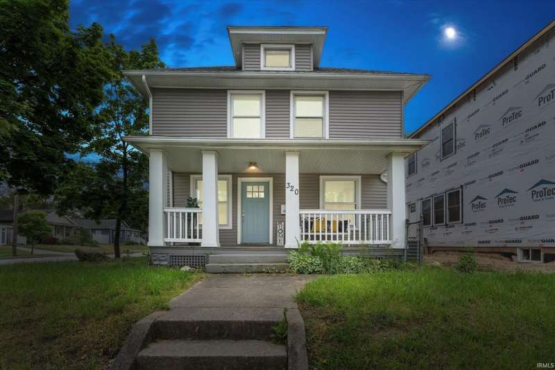 You won't believe this stunningly renovated American Foursquare in South Bend's Harter Heights, steps from downtown and a major university. You will love the charming front porch, it sets the tone for this exceptional home. Inside, gorgeous plank flooring flows from the living room to a modern eat-in kitchen, complete with custom shaker cabinetry, stone countertops, a custom tile backsplash, and stainless steel appliances. The master bedroom features a generous closet and a luxurious en-suite bathroom with a modern vanity, sleek fixtures, and a custom-tiled walk-in shower. Every detail shines, from the convenient main-floor laundry and beautifully updated 21/2 bathrooms. This move-in-ready gem, ideally located, is a rare find. Don't miss out?schedule your showing today!