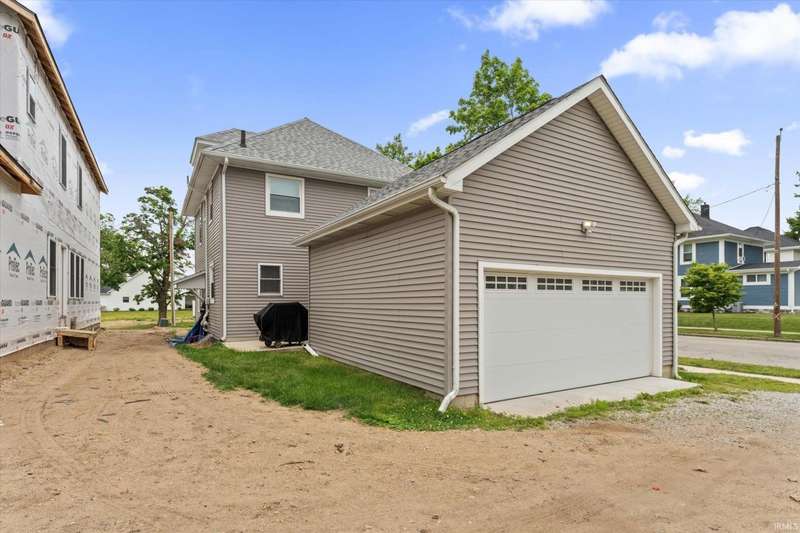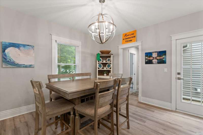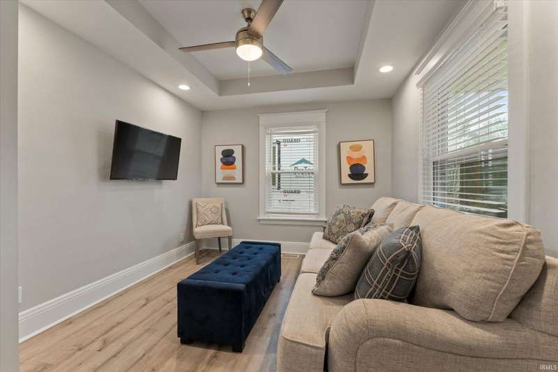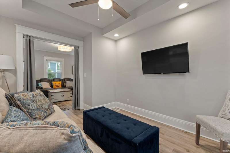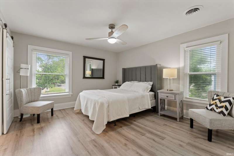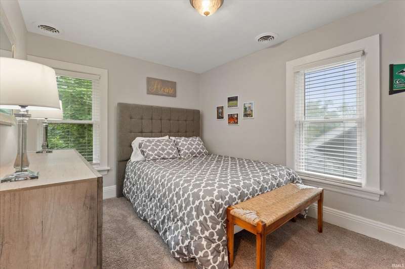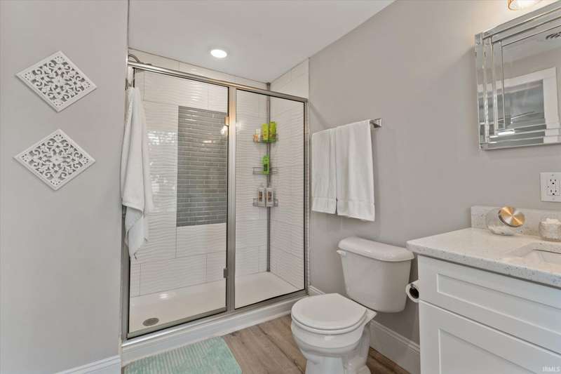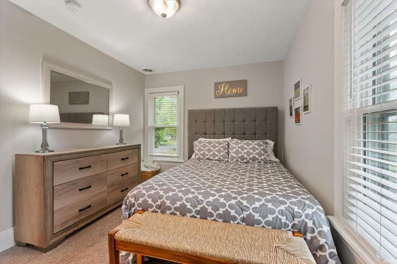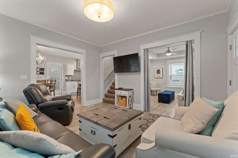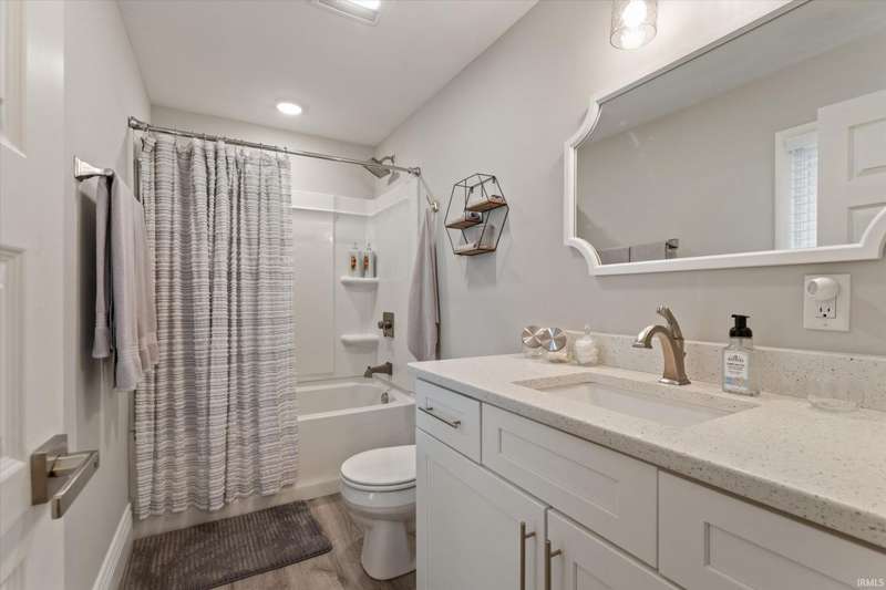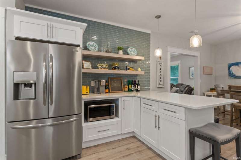 You won't believe this stunningly renovated American Foursquare in South Bend's Harter Heights, steps from downtown and a major university. You will love the charming front porch, it sets the tone for this exceptional home. Inside, gorgeous plank flooring flows from the living room to a modern eat-in kitchen, complete with custom shaker cabinetry, stone countertops, a custom tile backsplash, and stainless steel appliances. The master bedroom features a generous closet and a luxurious en-suite bathroom with a modern vanity, sleek fixtures, and a custom-tiled walk-in shower. Every detail shines, from the convenient main-floor laundry and beautifully updated 21/2 bathrooms. This move-in-ready gem, ideally located, is a rare find. Don't miss out?schedule your showing today!