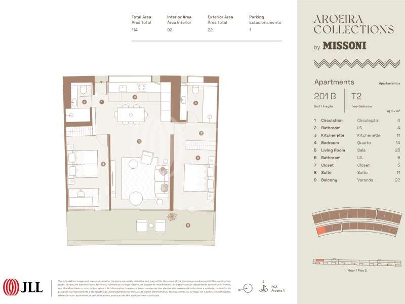 Apartamento T2 com 92 m2 de área bruta privativa, com piscina no Aroeira Collections by Missoni, um projecto único situado na exclusiva paisagem da Herdade da Aroeira, a 30 minutos de Lisboa e a poucos minutos das praias da Costa da Caparica. O empreendimento inclui uma infraestrutura de lazer completa: um hotel, clubhouse, healthcenter com ginásio, spa, sauna e salas de massagens, cinco campos de ténis e de padel, dois campos de golfe PGA, restaurante, uma mercearia e piscina comum. Além disso, vemos as falésias e dunas arenosas que protegem as praias locais e se abrem para o vasto horizonte atlântico. O Aroeira Collections by Missoni está situado a apenas 4 minutos de carro até ao supermercado, 10 minutos de bicicleta até à praia, e a Aroeira está a 30 minutos de todos os restaurantes, todos os teatros, todas as escolas que a cidade tem para oferecer. Categoria Energética: A #ref:89319