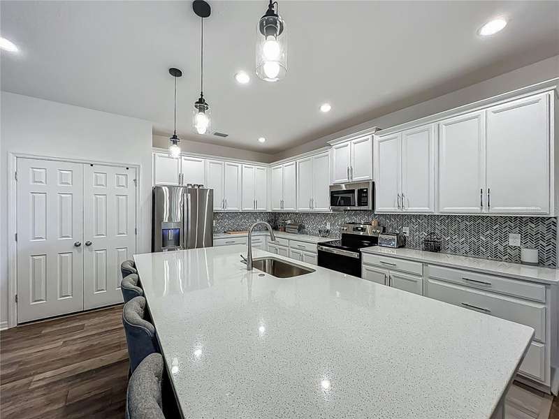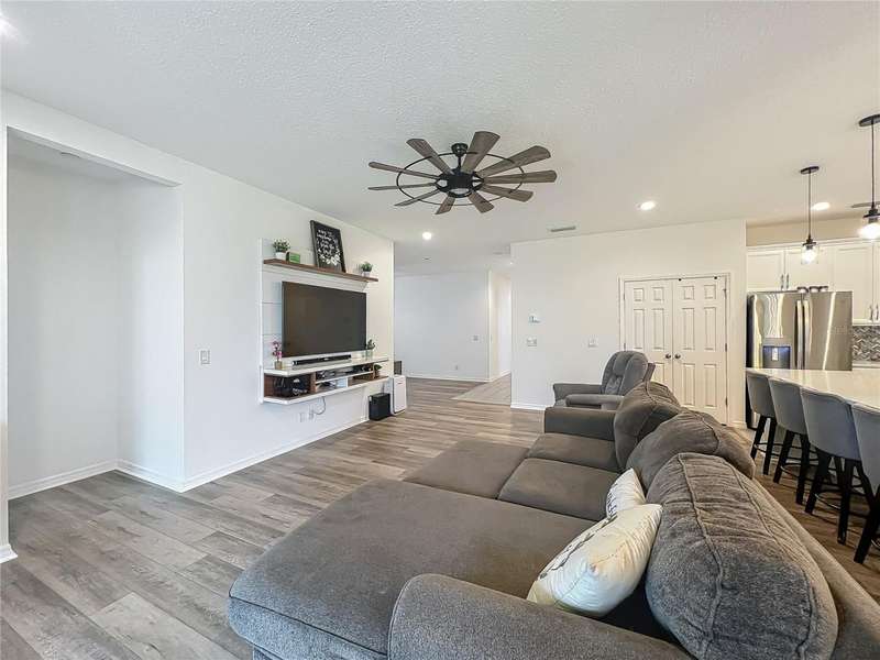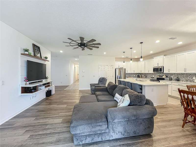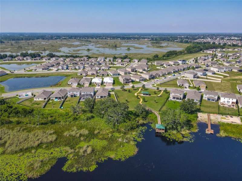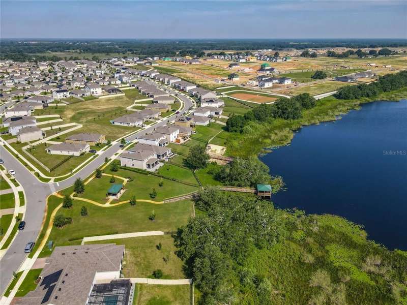 LAKE FRONT ON CLERMONT NORTHERN CHAIN OF LAKES! This 4-bedroom, 2-bath beautiful home is located on the vibrant Chain of Lakes in Northern Clermont. This scenic and versatile chain consists of Lake Lucy, Lake Emma, Cherry Lake, and the Palatlakaha River Waterway. Perfect for fishing, boating, skiing, air boating, and exploration! Home features many upgrades throughout: Termite bond, luxury plank vinyl flooring, beautiful ceramic tile, double pane windows, new landscaping in front, newly screened rear porch, and large fenced-in yard. Fantastic open kitchen with stainless steel appliances, quartz countertops, 42-inch cabinets, back splash, breakfast bar, pendant lighting, recess lighting, and large closet pantry. Floor Plan also features a split bedroom plan, an inside laundry room, a tray ceiling in the primary, dual sinks in both bathrooms, plus a bonus room that could be a formal dining room, office, exercise room, or playroom. So much to offer and only a 2-year-old home! Located in a wonderful community and on a dead-end street, the community dock and a pavilion are conveniently located next to the home. Also, features a community pool, playground, park, and sidewalks throughout. Great location too! Only 10-15 minutes to the FL Turnpike, 45 minutes to downtown Orlando, and all theme parks, and only 20 minutes to Historic Downtown Clermont. This charming downtown area features historic houses & buildings, retail shops, restaurants, breweries, & nightlife. And only 20 minutes South of The Villages. Are you ready to embrace the lakefront lifestyle today in this stunning nearly new home? Start your adventures by building your own boat dock and enjoy everything this beautiful setting has to offer!