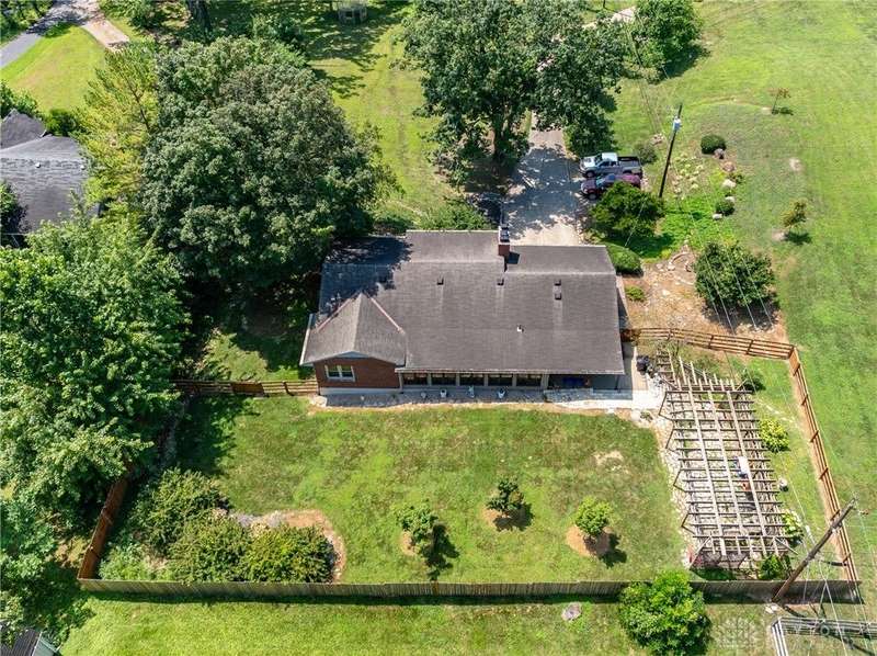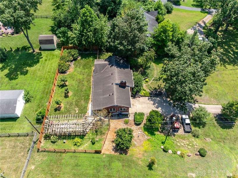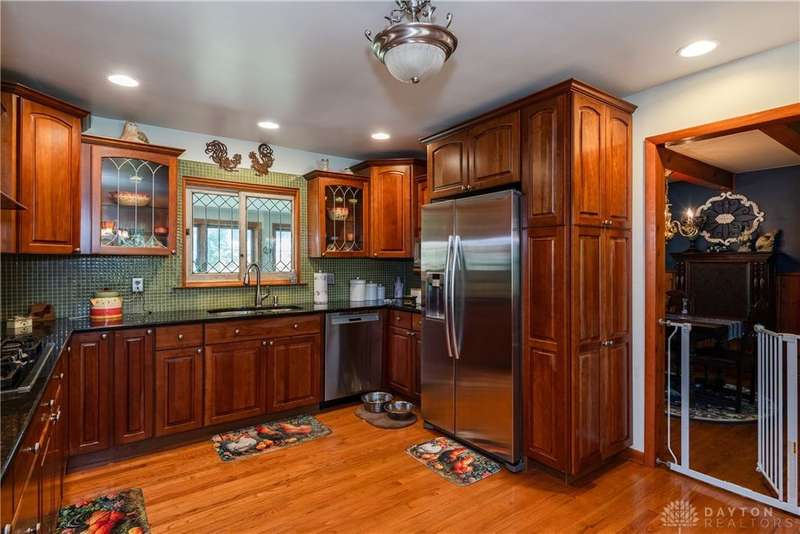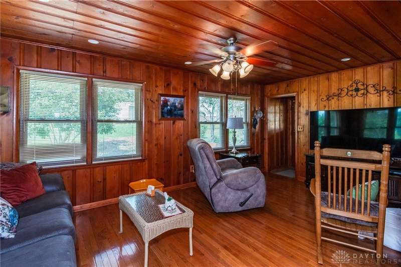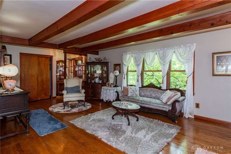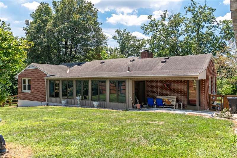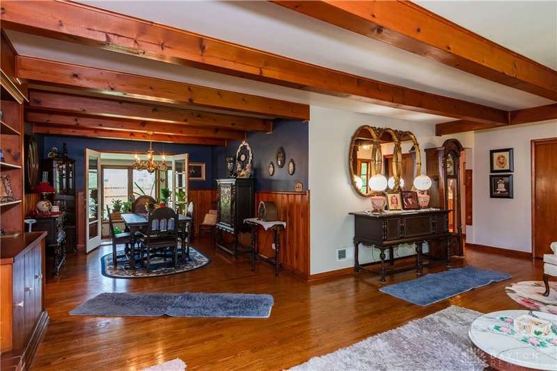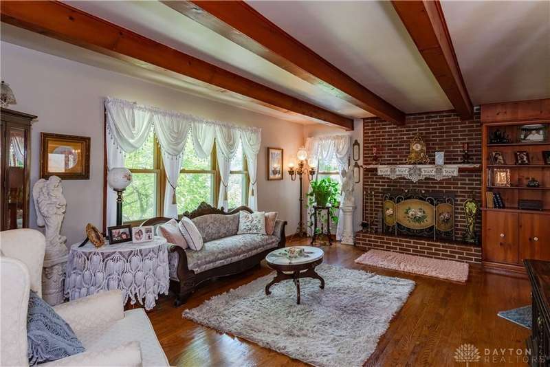 Tucked away far off the road and surrounded by mature trees, this meticulously maintained brick ranch offers privacy, character, and comfort on two lots totaling 1.48 acres. With over 1,700 sq ft of living space, 3 bedrooms, 2 full baths and full basement, this home is perfect for anyone seeking a peaceful retreat with convenience, located close to I-75, shopping and dining. Inside you'll find warm hardwood floors throughout, a spacious living and dining area with wood beams, gas fireplace, french doors to the 4 seasons room and the bedroom nook of the house tucked quietly away from the kitchen and den. The kitchen is a stunner? rich cherry cabinetry, granite countertops, stainless steel appliances, practical backsplash and a window peeking through to the gorgeous tiled sunroom. Storage galore in the full walkout basement with closets, laundry and a full bathroom among the additional living space. The outside of this property is just as impressive! The landscaping, trees, small creek, covered back porch, pergola and fully fenced back yard offer an experience for everyone. Only 2 owners in the last 55 years and it shows!