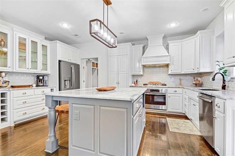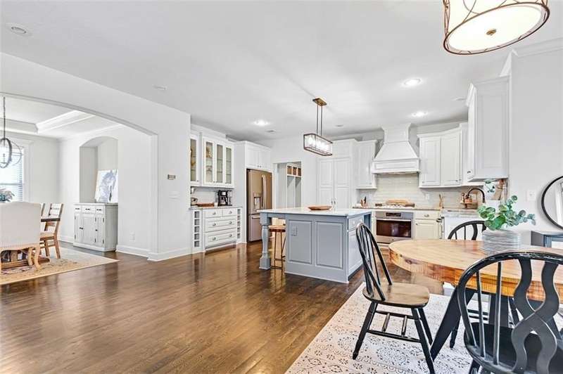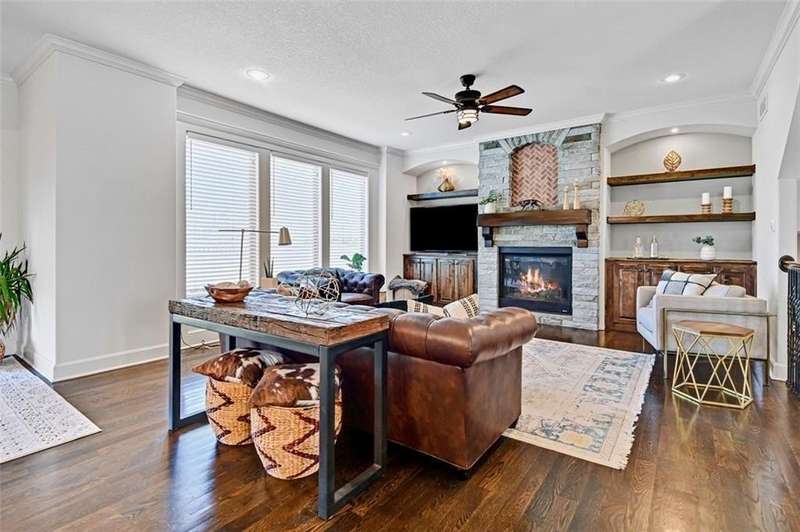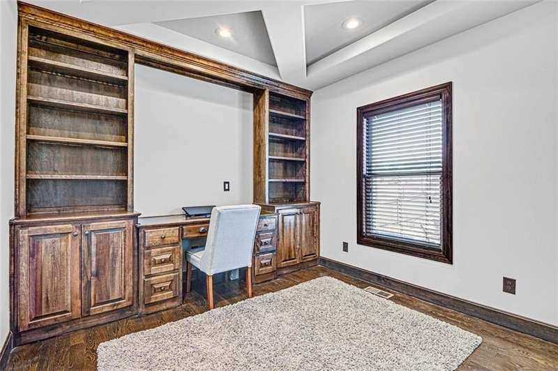 Beautiful 2-Story home is ready to move into! Hardwoods throughout the main level! Fabulous built-ins and designer touches throughout! Custom kitchen cabinets with large island, extra hutch space and walk-in pantry provide plenty of storage space. Eat in kitchen plus formal dining room allow for gathering family and friends. Boot bench at garage entrance keeps shoes, bags and coats organized. Main level bedroom or office with built-ins and access to full bath. Kitchen opens to great room with even more built-ins and a beautiful stone fireplace! Walk out to the covered, stamped concrete patio and enjoy the cozy firepit. Unfinished basement provides additional storage space.