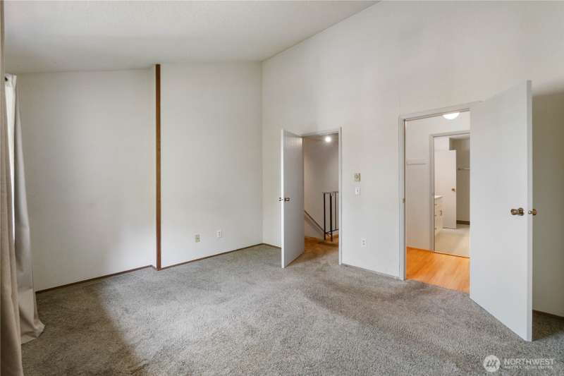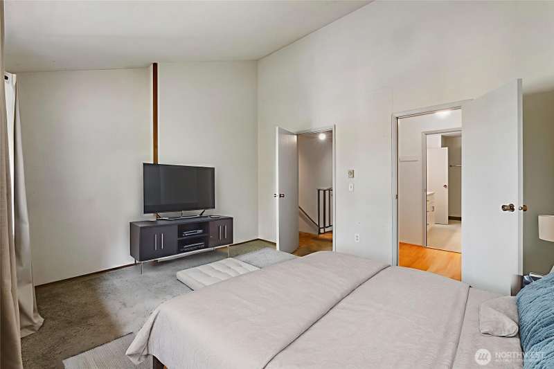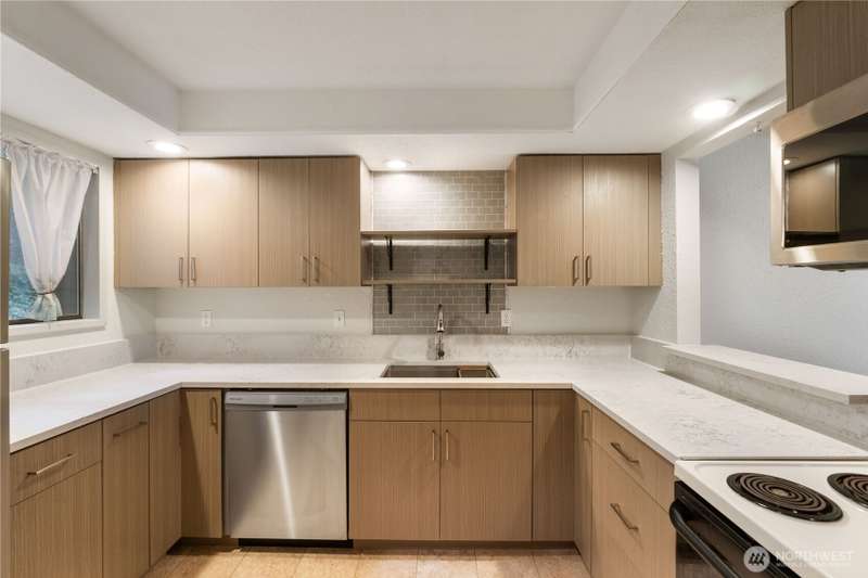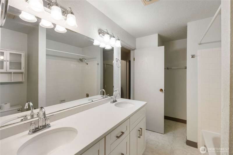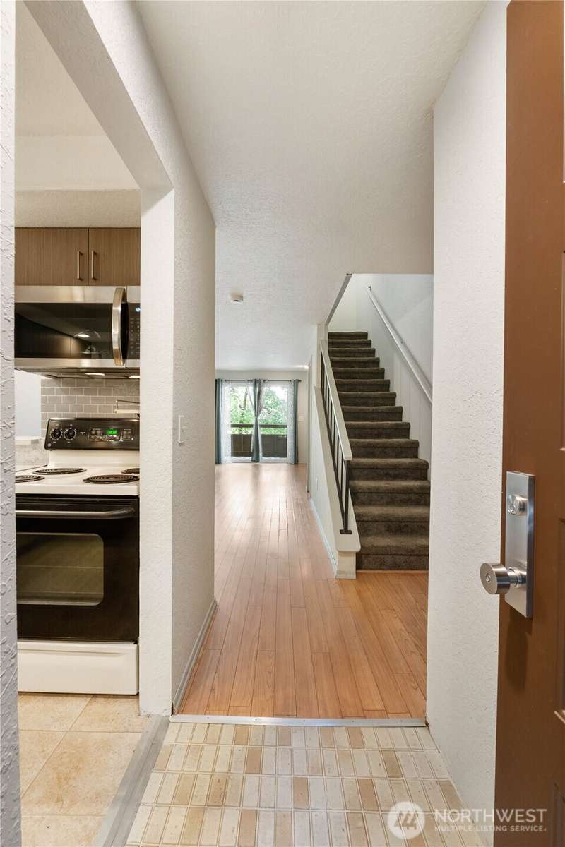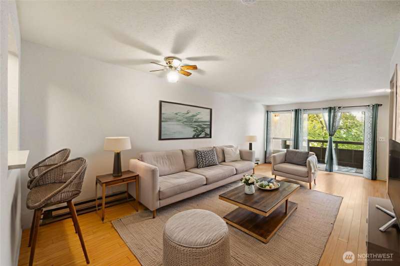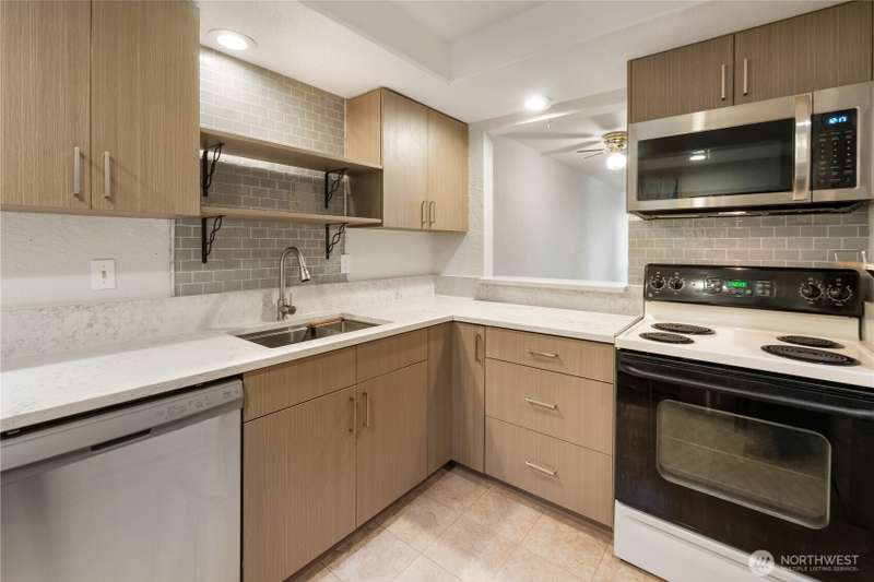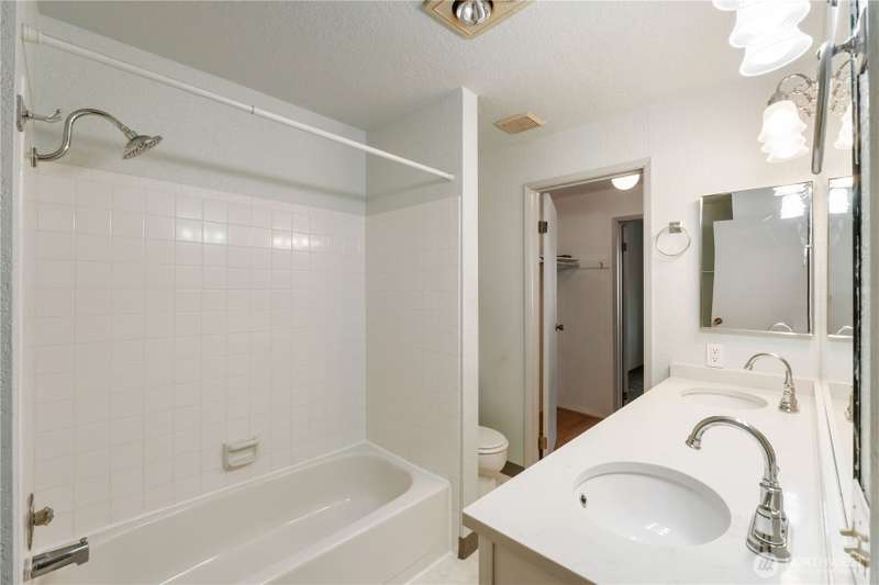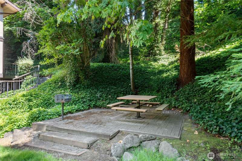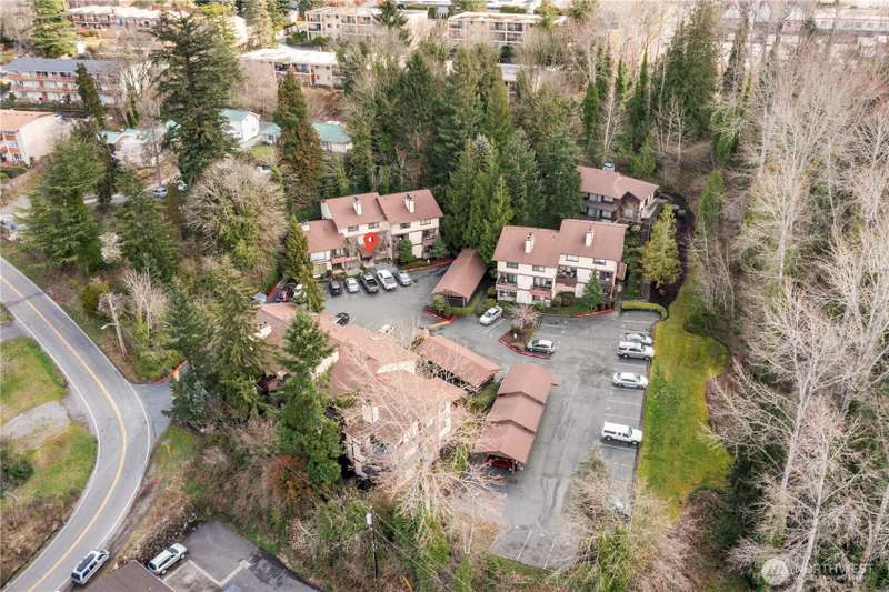 Welcome to this beautifully updated two-story condo offering light-filled, open-concept living. The main level features new double-pane windows and slider, a cozy fireplace, and access to a private deck—perfect for morning coffee. The upgraded kitchen includes stainless steel appliances, quartz countertops, and modern cabinetry. Upstairs are two spacious bedrooms, a primary suite with walk-in closet, dual-sink vanity, and in-unit laundry. Enjoy two reserved parking spaces (one covered), a second patio, and community BBQ area. Enjoy the best of both worlds—tranquil wooded living with easy access to shopping and dining.