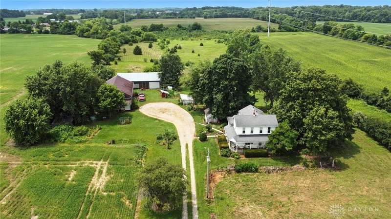 Fantastic mini-farm 8.9 acres plus extra 11 acres of leased land. Has Been the Taylor homestead since 1962. Farm has many uses! Horses--Cattle-goats-turkeys-guineas-& now chickens! Two large barns; wood 40x80 and a metal barn 30x100 with a partial concrete floor plus 220volts service. This is a turnkey farm! all farm, (3 tractors-mowers-bush hogs-wood chipper-post hole auger-etc-All in working order)& are staying with the property! The wood barn 4 stall's with a large hay loft and Grainery. It has as well been a cow/calf cattle farm and now Heritage breed farm with two active coops as well as two expansion coops currently with 20+ chickens. Property is self sustainable % You can grow anything you need, hay-corn-pasture, This farm has abundant game! For the hunter-deer-wild turkeys pheasant-quail-& rabbits. The extra leased land provides an extra income from a yearly cash crop. This property is the perfect size & area for a CAUV State program. The Home has 4 bedroom-2 bqaths-2 story with a wrap around porch. It has natural wide plank pine under carpet. Upstairs has a Balcony off primary bedroom with stairs to ground level for assistance & safetyThis Property is peace & Quiet coexist!