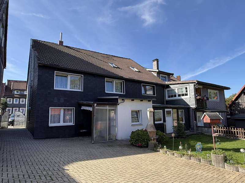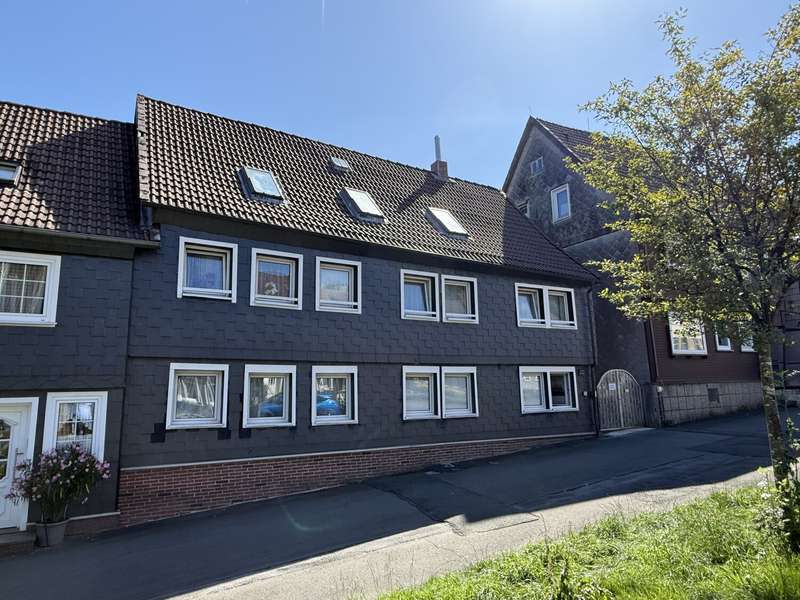 Charming semi-detached house with vaulted cellar and small garden plot This well-kept two-family house built in 1800 combines traditional charm with contemporary living comfort. On a living space of approx. 235 m², there are a total of eight well-designed rooms, including six bedrooms and two bathrooms. The property is particularly suitable for families, multi-generational households or for buyers who want to combine living and renting. The plot covers approx. 444 m² and boasts a well-kept outdoor area as well as a practical shed including garage. The façade is fully insulated and clad in slate. The house was extensively renovated in 1985. The characteristic Harz double roof and the massive, historic vaulted cellar emphasize the original style of the building and offer additional storage space and versatile usage options. On the first floor there is a self-contained residential unit with a living space of approx. 75 m². This unit is currently let and generates an annual basic rent of EUR 3,600. This is an advantage for prospective buyers who value a direct source of income or are planning to use the property for their own use. The main apartment on the second floor and in the attic extends to a generous 160 m². Several flexible rooms await you here, which can be designed according to your individual wishes. A friendly layout, ample natural light and the classic layout create a pleasant living ambience. The bathrooms are functionally equipped, the floor coverings and wall designs correspond to the well-kept standard of a property from the 1980s. Two modern gas floor heating systems, which were renewed in 2014 and 2016, provide cozy warmth. They guarantee pleasant temperatures with good energy efficiency. The quality of the fixtures and fittings corresponds to an average, functional standard. The versatility of the house is particularly noteworthy: whether as a spacious family home, a multi-generational home or a combination of living and renting - numerous living models can be realized here. The narrow driveway to the property should be taken into account during a viewing. The shed with garage offers sufficient space for vehicles, bicycles or garden tools. Both the house and the property are in a well-kept condition. The last comprehensive renovation was carried out in 1985, since when important modernizations such as the heating have been regularly replaced. The peaceful surroundings and the solid building fabric make this property an interesting option for buyers who want to combine historic building fabric and modern living comfort. Pictures of the first floor apartment are not published for reasons of discretion. You are welcome to arrange a viewing appointment and see for yourself the many possible uses and the feeling of living that this two-family house offers. Mrs. Keller with "von Poll Finance" is at your disposal for the financing.