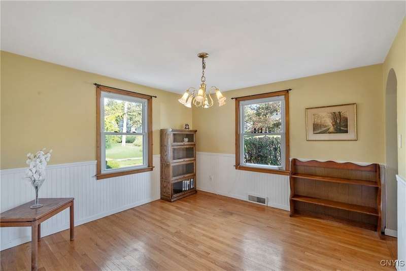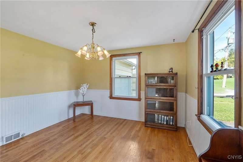 NESTLED IN THE VILLAGE OF SOLVAY, THIS INVITING CAPE COD HOME OFFERS THE PERFECT BLEND OF CLASSIC STYLE AND MODERN CONVENIENCE. LOCATED MINUTES FROM TOWNSHIP 5, FAIRMOUNT, WESTVALE AND DOWNTOWN SYRACUSE WITH EASY ACCESS TO ROUTE 690. THIS PROPERTY IS IDEAL FOR COMMUTERS AND THOSE SEEKING A WALKABLE COMMUNITY. THE HOME BENEFITS FROM SOLVAY'S ECONOMICAL ELECTRIC SERVICES KEEPING UTILITY COSTS LOW.STEP INSIDE TO DISCOVER BEAUTIFUL HARDWOOD FLOORING THAT FLOWS THROUGHOUT THE MAIN LIVING AREAS, CREATING A WARM AND TIMELESS AMBIANCE. THE LARGE, MODERN KITCHEN IS A COOK'S DELIGHT, FEATURING A SPACIOUS PANTRY CABINET WITH PULL-OUT SHELVES, A BREAKFAST BAR, AND IT'S FULLY APPLIANCED. CENTRAL AIR ENSURES SUMMERTIME COMFORT.THE BATHROOM IS A STANDOUT, ADORNED WITH ORNATE CERAMIC ACCENT TILES THAT ADD A TOUCH OF WHIMSY. THE LOWER LEVEL OFFERS EXCITING POSSIBILITIES WITH PARTIAL CERAMIC FLOORING AND THE OPPORTUNITY TO USE AS A REC ROOM OR CREATE OTHER LIVING SPACES. THE LOWER LEVEL ALSO FEATURES A WALKOUT DOOR TO A STUNNING BACKYARD, COMPLETE WITH A LARGE DECK AND BRICK PATIO PERFECT FOR ENTERTAINING AND A STORAGE SHED CLEVERLY TUCKED UNDER THE GARAGE FOR ADDED CONVENIENCE. THIS HOME IS BEING SOLD "AS IS" TO SETTLE ESTATE, PRESENTING A UNIQUE OPPORTUNITY TO OWN A WELL-MAINTAINED PROPERTY IN A PRIME LOCATION. DON'T MISS YOUR CHANCE TO MAKE THIS CHARMING CAPE COD YOUR OWN!*****NOTE:SELLER WOULD LIKE TO LEAVE SOME OF THE FURNITURE IF POSSIBLE****ALL OFFERS DUE BY TUESDAY 10/21 AT 5PM****MULTIPLE OFFERS RECEIVED*** TO BE SOLD "AS IS" BY ESTATE****