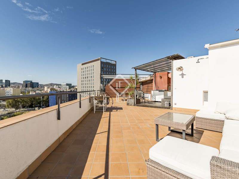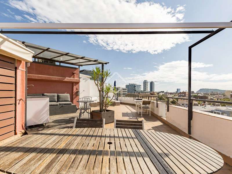 Discover an extraordinary living experience in one of Barcelona's most vibrant and sought-after neighbourhoods. This exceptional penthouse loft, located just two streets from the bustling Rambla de Poblenou and a mere three streets from the sun-drenched beach, offers a unique blend of industrial character and modern luxury. Housed within a distinctive industrial building, this top-floor residence immediately impresses with its soaring 5-metre high ceilings, creating an immense sense of space and light. The loft-style design seamlessly integrates living areas, while cleverly incorporating three distinct sleeping spaces and two contemporary bathrooms, providing both openness and privacy. What truly sets this property apart is its unparalleled convenience: the building features on-site ground-floor parking, with one dedicated parking spot included in the price, a coveted rarity in central Barcelona. Ascend to your private oasis, where an amazing private terrace awaits on the top of the property. Here, the owners can enjoy abundant sunshine and sweeping, open views of the city skyline, perfect for entertaining, relaxation, or simply taking in the urban panorama. This penthouse represents a truly unique offering in Barcelona, a harmonious fusion of industrial heritage, modern design, prime coastal proximity, and the invaluable amenity of private parking. Please contact us to arrange a viewing.