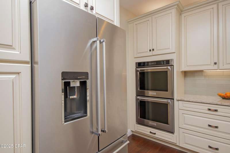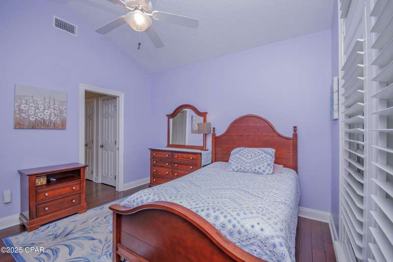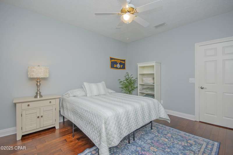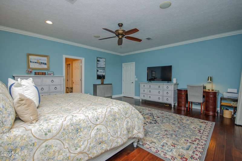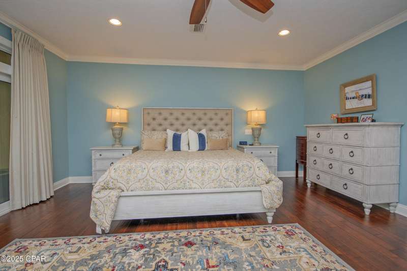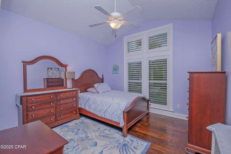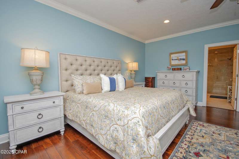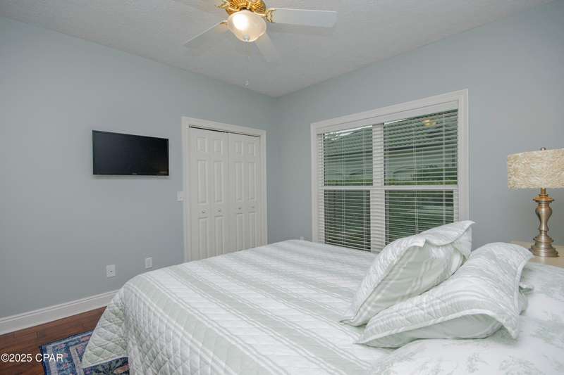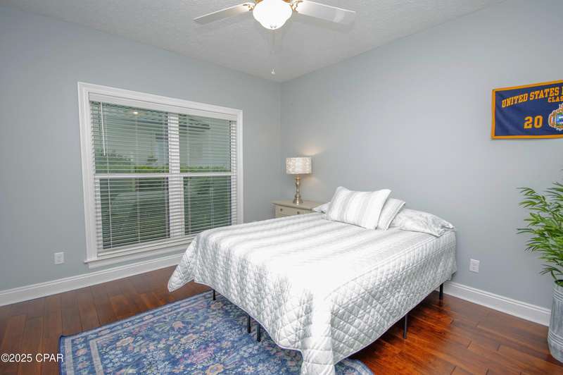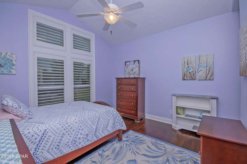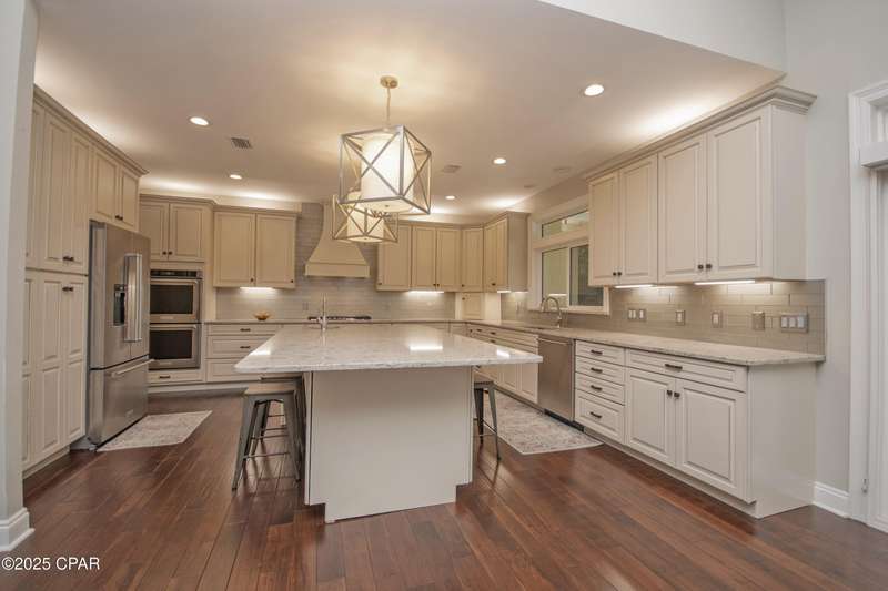 Welcome to Legend Hills in Bay Point! A private gated golf course community. The home is located between the 9th green and the tee box of the 10th hole par 3 over the water, and on the cul de sac of Dragons Ridge Road. This 4 bedroom, 3 bath home includes a beautiful open floor plan with incredible sunset views over the screened pool patio and the golf course. Soaring 12' ceilings with crown moldings, built-in cabinets, and the gas fireplace create an open welcoming home. The oversized 2-car garage includes a separate garage door for your golf cart, two large closets, built-in storage cabinets, and polyurea floor coating with a lifetime warranty. Renovated in 2018 after Hurricane Michael, the home features a new 3-dimensional shingle roof, spray-foam insulation, new HVAC systems, all new hurricane-rated windows and doors, engineered acacia hardwood flooring, completely renovated kitchen (new cabinets, quartz countertops, KitchenAid stainless steel appliances, etc.), Waypoint cabinets in the kitchen, great room, and master bathroom, a new pool screen enclosure, refinished gunite pool, new pool pump & filter, and more. The master bathroom includes a huge walk-in closet and the frameless glass shower includes a steam generator with bluetooth speakers, lighting, and aroma therapy. Bay Point residents have 24-hour security, gated entry, the Nicklaus Golf Course, the Point South Marina that hosts the annual Bay Point Invitational Billfish Tournament, and a golf cart friendly community. Often called the best neighborhood in Bay County. The home is vacant and easy to show. Call today to schedule your private tour and submit your offer.