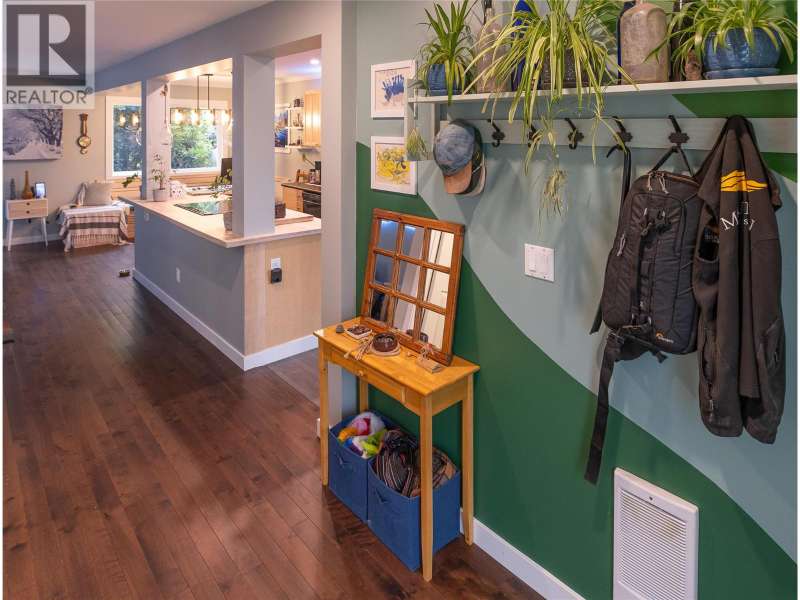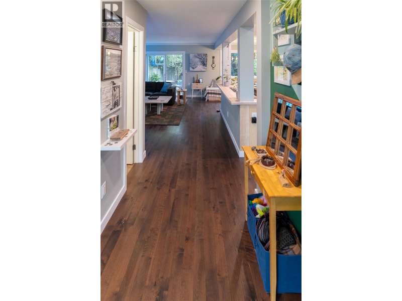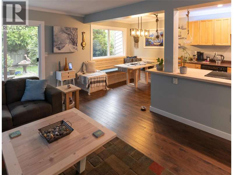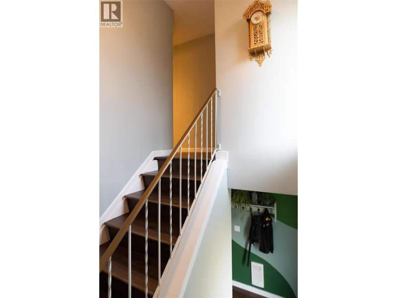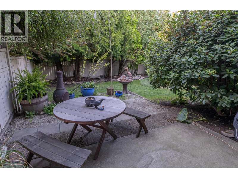 Welcome home to Franklyn Court! This 2 level end unit townhome offers 3 bedrooms, 2 bathrooms, a large fenced private yard and comes with two parking stalls. Upon entry you are welcomed to the open concept kitchen, living and dining room complete with hardwood floors and newer paint. The kitchen has been tastefully remodelled with a new island countertop, lighting, new fridge and stove and the custom made banquette in the dining room is heated to keep you cozy on chilly days. On the main floor there is also a half bathroom, full laundry room that provides plenty of space and for even more storage there is a 4’ crawlspace beneath the entire main floor. The freshly painted stairwell will lead you to the second floor where you will find the 3 bedrooms and full bathroom. Boasting beautiful landscaping and privacy, the yard is in the end townhome backing onto Badke Road, offering a quieter location to enjoy the patio and bbq area. There are also a shed in the side yard for all your outdoor storage needs plus it is one of the largest yards in the complex. All the windows, front door and patio door have been replaced as well. Franklyn court is family friendly, comes with 2 parking stalls, low strata fees, pets welcome with some restrictions, and centrally located to Ben Lee Park, schools, shopping and transit. This is a rare find, book your appointment today! (id:7434)