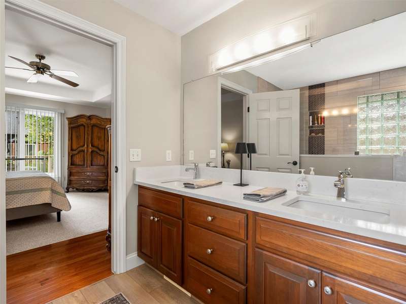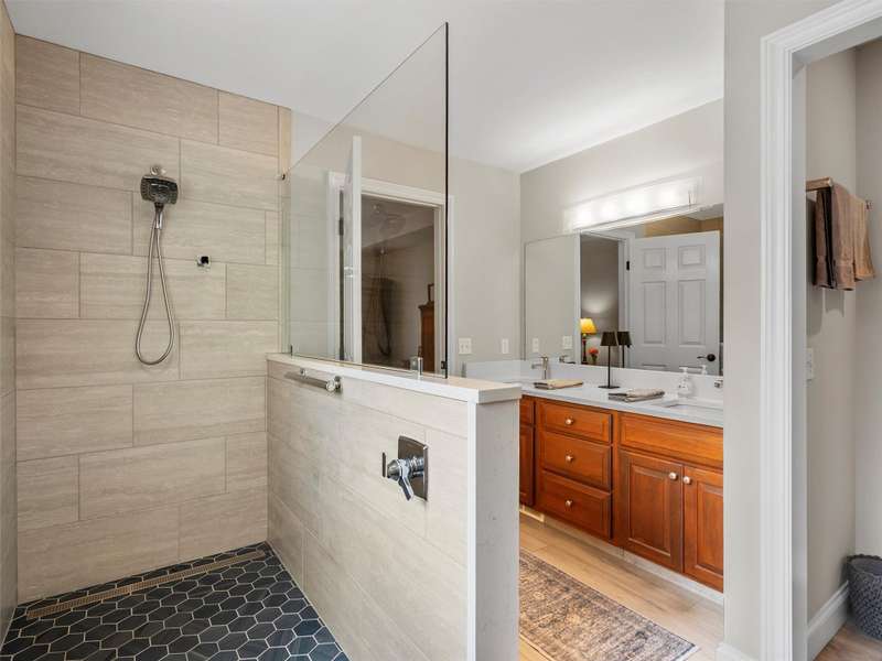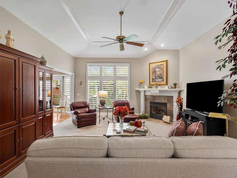 Discover this meticulously cared for and updated custom ranch home. Enjoy a spacious great room featuring updated floors, a gas fireplace, and plantation shutters. The dining room boasts wood floors and a large window that provides a view of the front yard. The kitchen includes a newer Anderson door wall, plantation shutters, remote-controlled blind, wood floors, and all appliances are included. The primary bedroom features a vaulted ceiling and backyard views. The newly renovated primary bath is filled with natural light and includes a large walk-in shower, a separate toilet room, and a generous walk-in closet. Bedrooms two and three have carpeted floors and share a full bath in the hallway. The first floor laundry room is equipped with a new washer and dryer, and there's an adjacent half bath. The finished lower level offers an open recreation area with a full kitchen, an exercise room, and included TV. The property also has a newer cement driveway, a front porch, and a beautiful backyard Trex deck with landscaping. A 2.5 car side-entry garage leads to the backyard. Recent upgrades include a new roof in 2020 and new HVAC, A/C 2020 & Hot Water Tank 2025, ensuring comfort and peace of mind. This home is truly a Polished GEM!