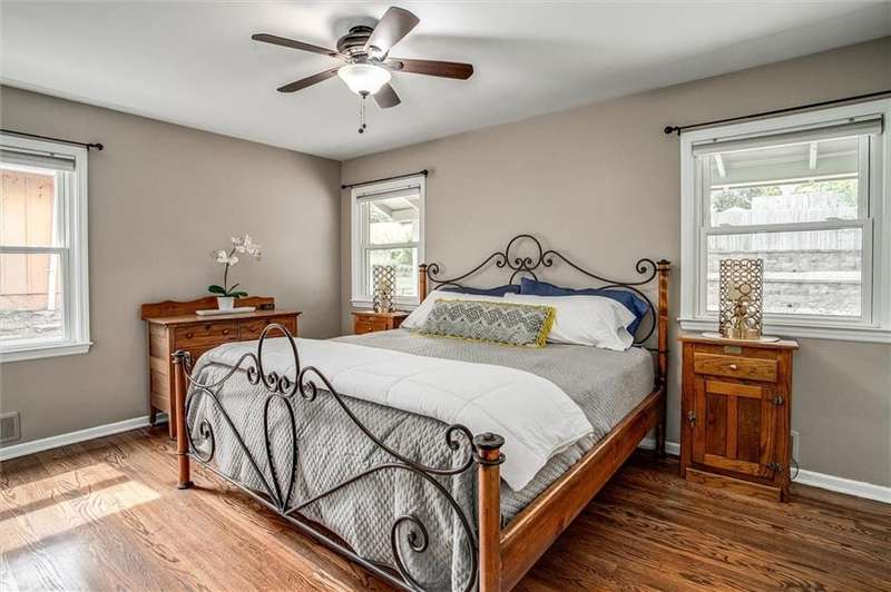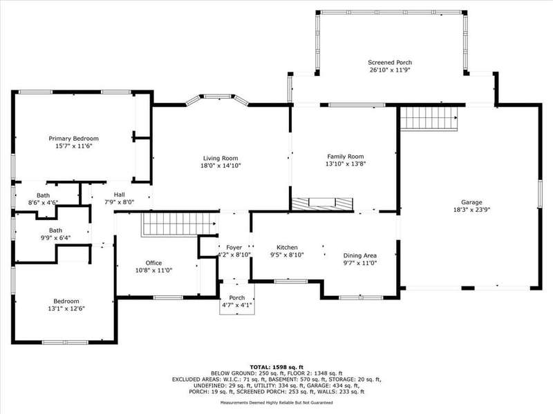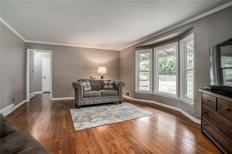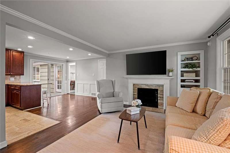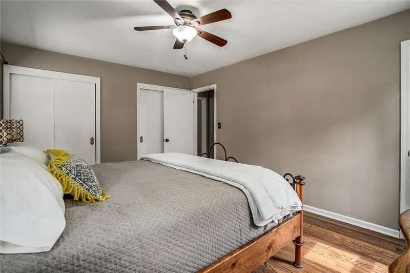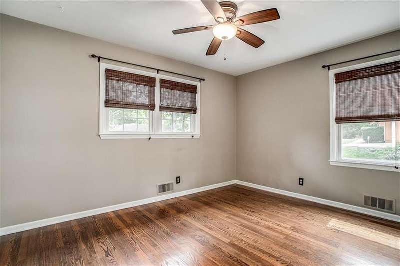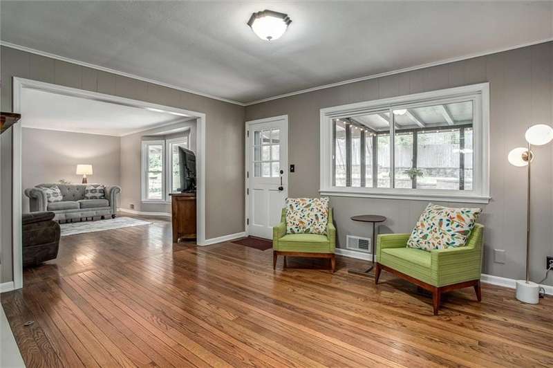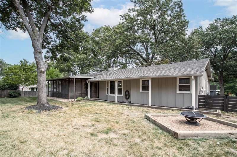 This Prairie Village ranch is so cozy with modern updates and charming original features! Beautiful hardwood floors throughout, brick fireplace, built-in shelving, and large picture windows! The kitchen has plenty of cabinetry with rolling shelves and a pantry, a large eat-in kitchen, and tile floors. Primary bedroom with full bath and double closets. The main floor 3rd bedroom has been converted to an office and staircase to lower level. A large non-conforming 3rd bedroom and a full bath are in the lower level along with a huge finished recreation area and very good sized storage area. The garage has a separate staircase to the unfinished portion of the basement for convenience. Outdoors is a large screened-in porch overlooking the big, level yard! A generous sized garage along with an attached storage shed provides all the space you need for cars and more! Plus, a new driveway! This is a must see house!