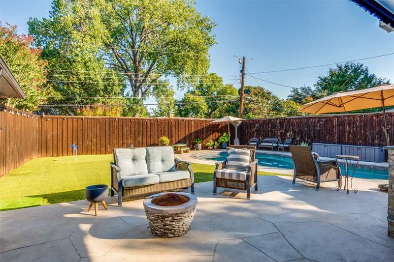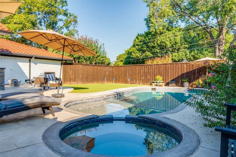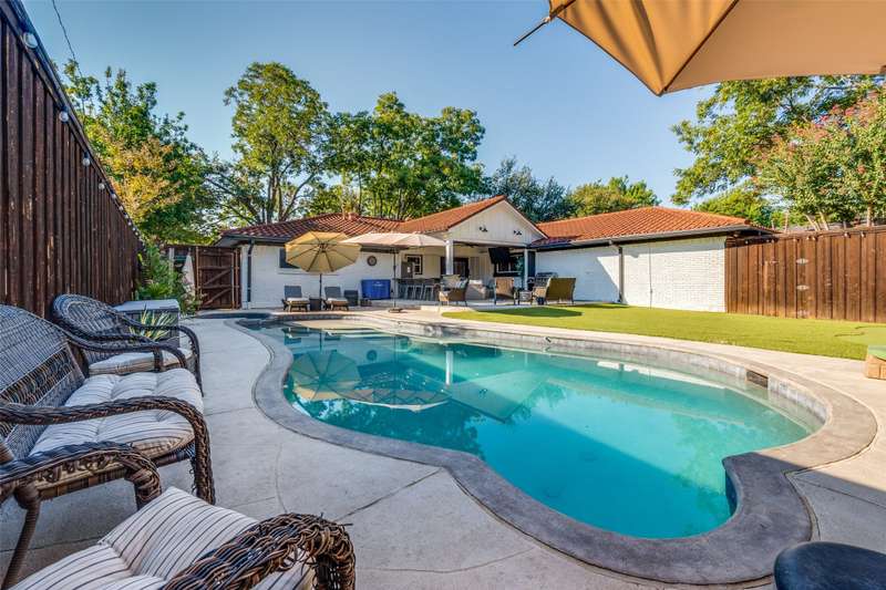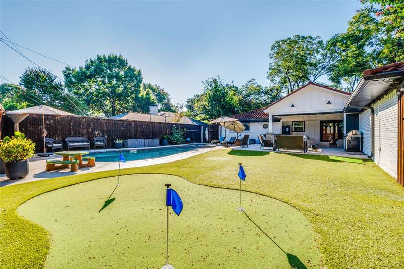 Welcome to 6121 Chesley Ln, a beautifully updated ranch-style home nestled in one of Dallas most sought-after neighborhoods. This charming single-story residence perfectly blends timeless curb appeal with modern luxury.Step inside to find a completely remodeled chefs kitchen, featuring sleek gray cabinetry, designer lighting, a massive island with seating, and a commercial-grade gas range. The open-concept layout makes this space perfect for both everyday living and entertaining.Outside, your private backyard oasis awaits. Relax under the shade of large umbrellas, take a dip in the resort-style pool and spa, or practice your short game on the custom putting greenall surrounded by lush landscaping and a privacy fence.With mature trees in the front yard, a classic red tile roof, and meticulous landscaping, this home delivers both style and comfort in equal measure.?? Key Features:4 Bedrooms 3 BathroomsDesigner kitchen with high-end appliances and finishesOpen-concept living and dining areasResort-style backyard with pool, spa, and putting greenOversized lot with mature trees and lush landscapingPrime location with easy access to White Rock Lake, top schools, shopping, and dining
