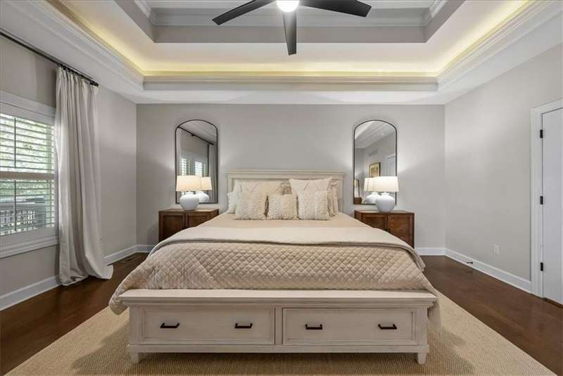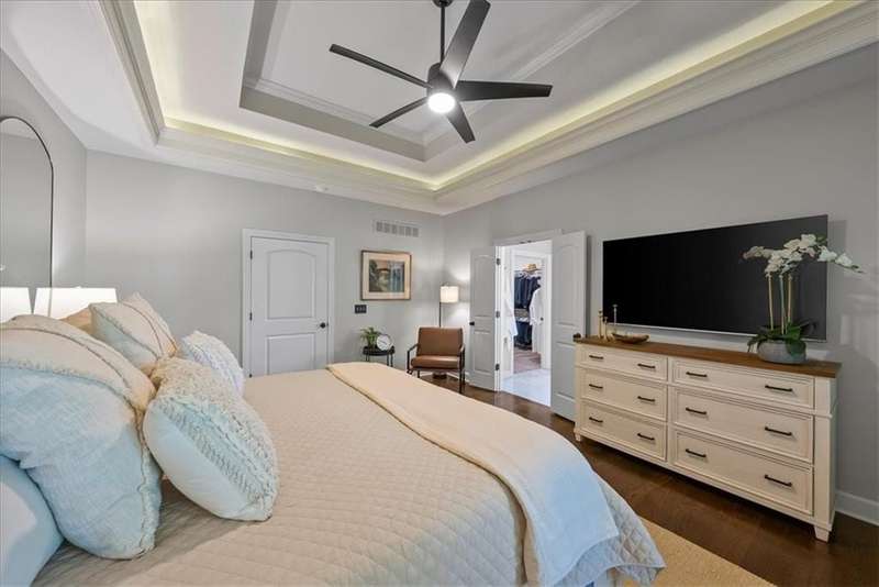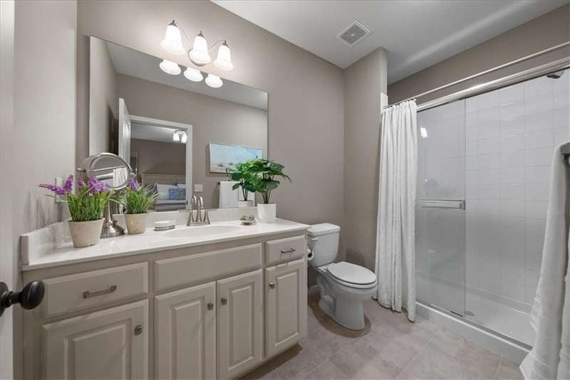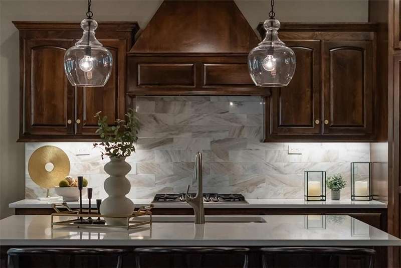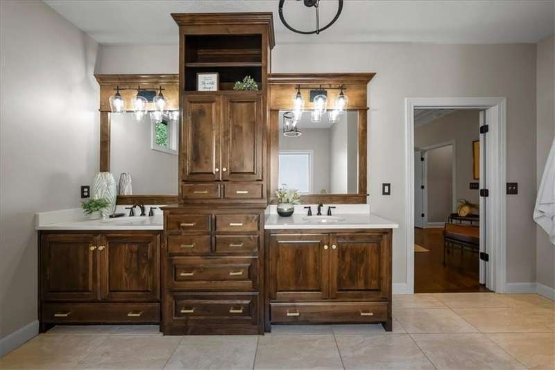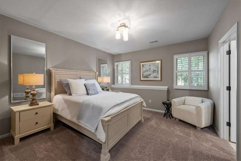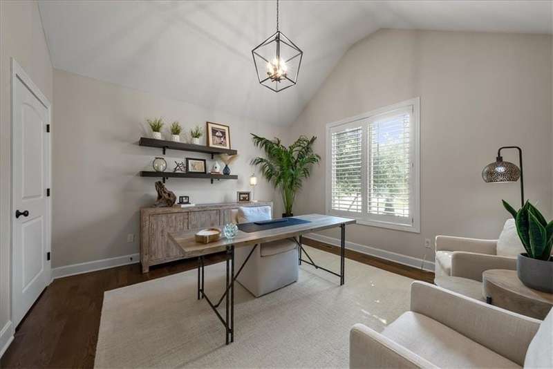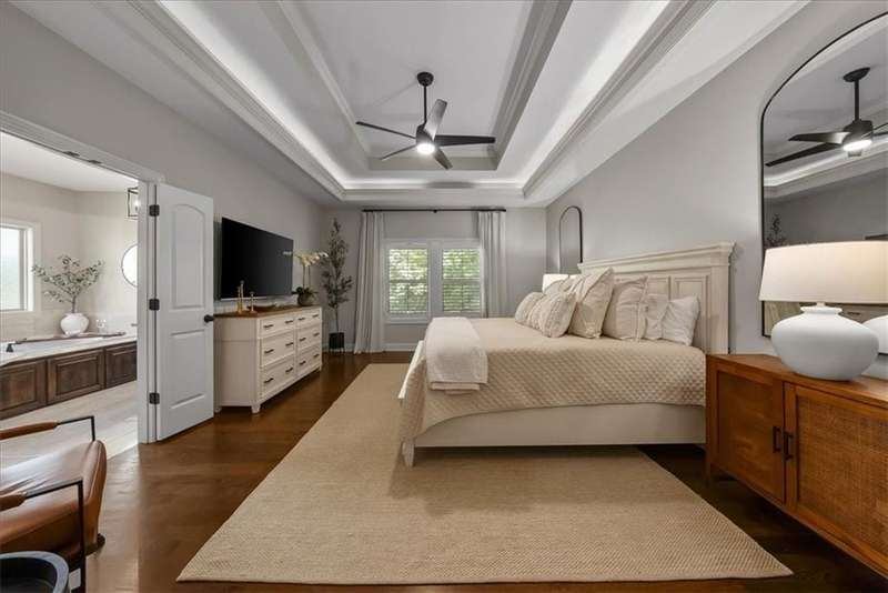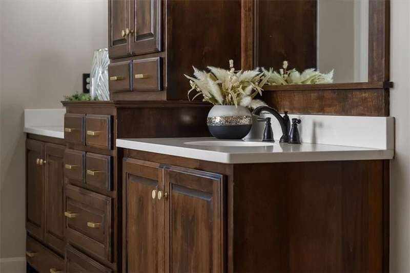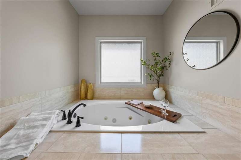 Welcome to comfortable living in this lightly lived-in former model home (Rodrock - Dillon reverse), perfectly positioned on a private wooded walk-out lot. The open floor plan draws you in with gleaming hardwoods, a beamed great room ceiling, and a cozy two-sided fireplace for gatherings. A chefs kitchen awaits with quartz countertops, stained cabinetry, stainless steel appliances, and an oversized walk-in pantry. The main level bedroom doubles beautifully as a guest suite or home office. Retreat to the primary suite with tranquil backyard views, spa-like bath with whirlpool tub, separate shower, dual vanities, and a walk-in closet connected to the laundry room. Entertain with ease in the expansive lower level boasting a wet bar, family room, and two private ensuite bedrooms. Outdoor living shines with a covered deck and see-through fireplace plus a covered patio overlooking serene trees and wildlife. Recent updates include fresh interior and exterior paint, plantation shutters throughout, new quartz kitchen counters, kitchen backsplash, lighting, deck extension, landscaping, and more. Nestled in a secluded hilltop neighborhood with no neighbors behind, this home combines privacy with convenience. All just minutes from Shawnee Mission Parkway shopping and eateries in the award-winning DeSoto School District and Mill Valley High School attendance areathis one is ready to impress and ready for you!