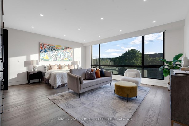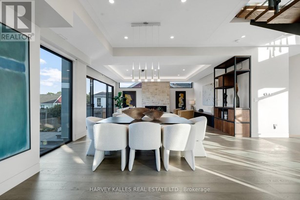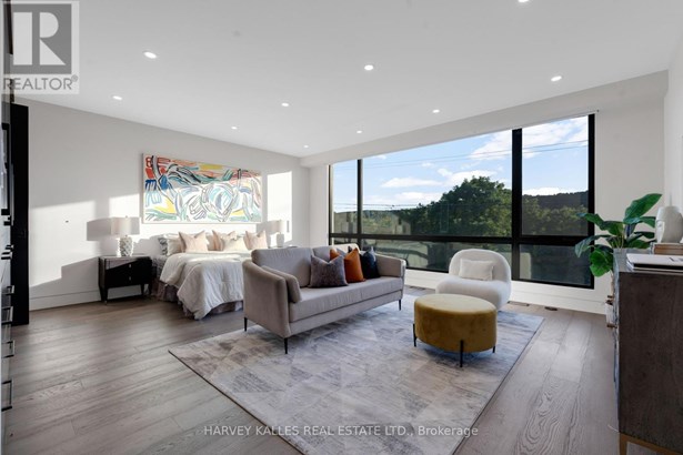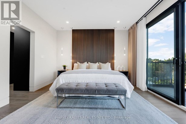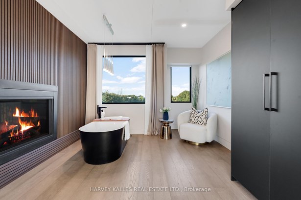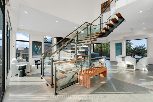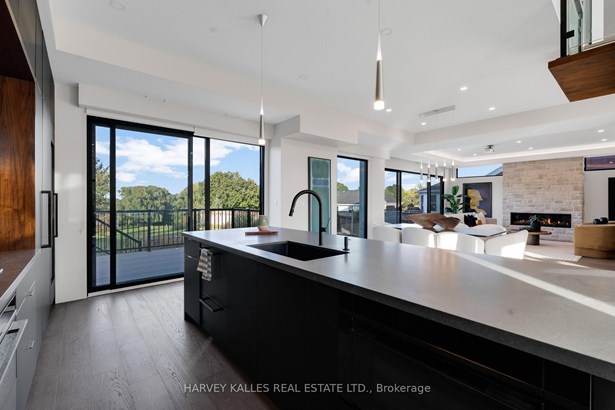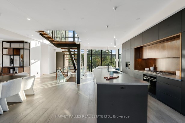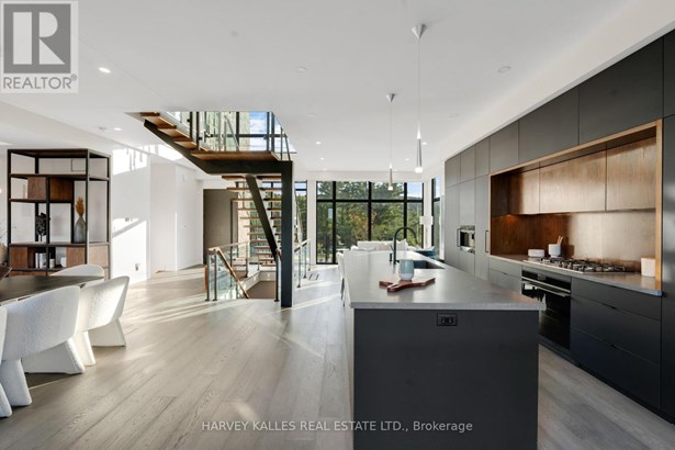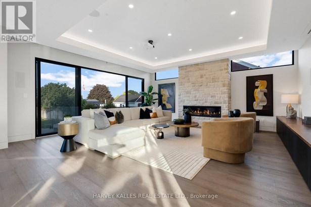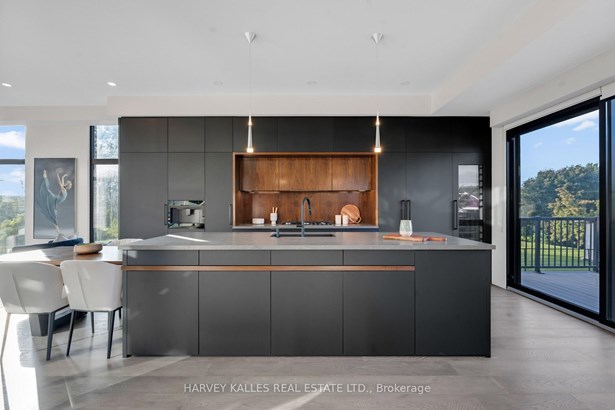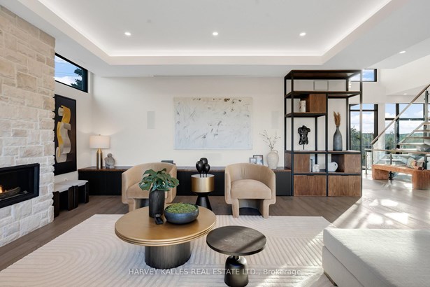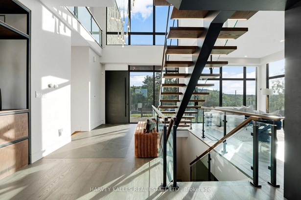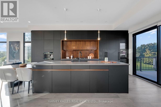 Directly across from the cliff-face of the Niagara Escarpment, in one of Milton's most serene and private settings, sits a newly built contemporary masterpiece designed by award-winning Sensus Design Studio. Resting on a remarkable 60 x 520+ lot backing onto 16 Mile Creek, this home offers a rare blend of modern architecture and countryside tranquility. With no neighbours in front or behind, walls of windows immerse you in nature, while the expansive backyard invites year-round enjoyment whether relaxing in the hot tub, recovering in the cold plunge, gathering around the fire pit, fishing, tobogganing, or even practicing your short game of golf! Inside, 21 ceilings and a floating staircase set a dramatic tone. A formal living room frames escarpment sunsets, while the sleek custom kitchen features high-end Fisher & Paykel appliances. The family room, anchored by a soaring stone fireplace, doubles as a home theatre with built-in projector and surround sound. The primary suite rivals a five-star retreat: a lounge with soaker tub overlooking the backyard, a double-sided fireplace, king-size sleeping area with custom headboard, walk-through closet, and spa-like ensuite. Two additional king-sized bedrooms each feature walk-in closets and lavish ensuites with wet rooms. Smart home features include lighting automation, landscape and irrigation systems, EV charger, and more. A perfect fusion of luxury design and natural beauty, this home is truly one-of-a-kind and must be experienced in person. (id:6370)