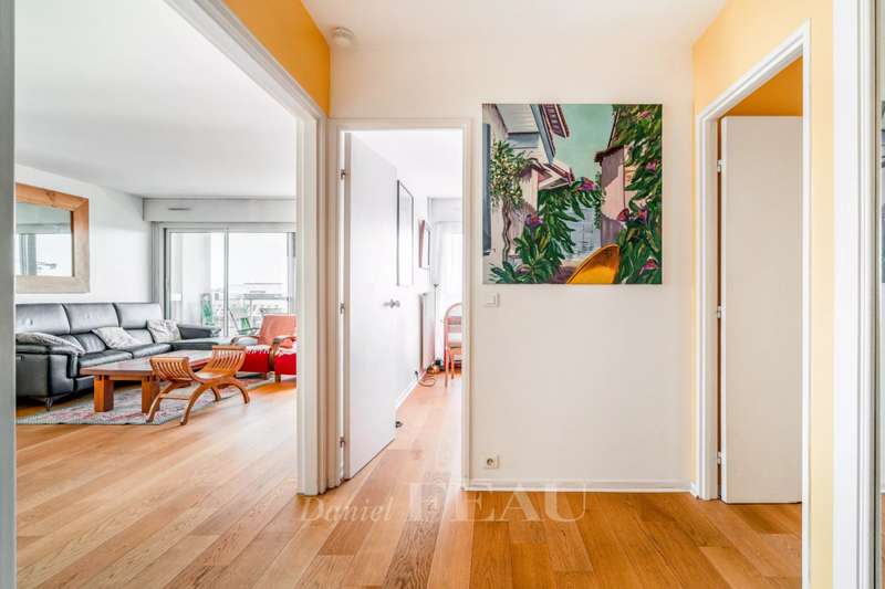 Rue de Paris. This bright and peaceful apartment benefiting from a 12 sqm balcony is on the 10th floor of a luxurious relatively recent residence with a garden and a swimming pool. Benefiting from an excellent floor plan, it includes a 34 sqm living/reception room with an open-plan kitchen, two bedrooms, a bathroom and a separate wc. With a cellar. A basement parking space may be acquired for a further 25000€.