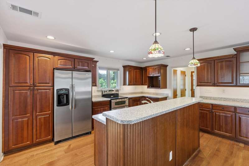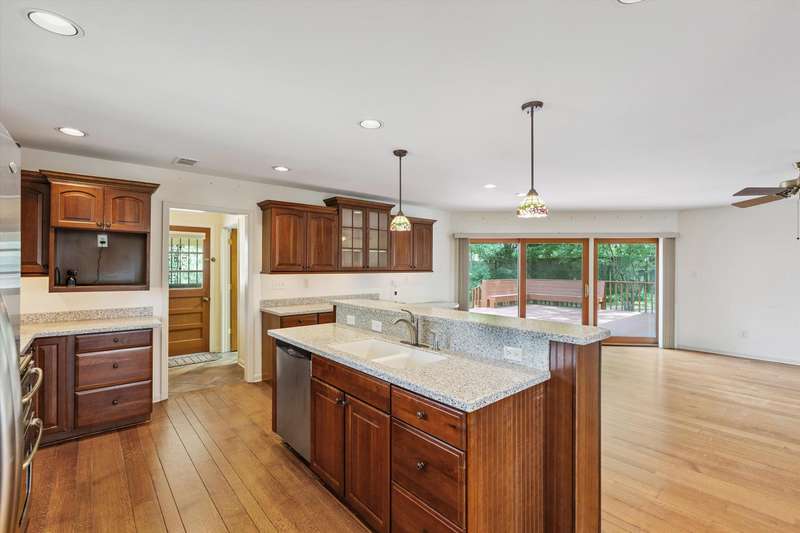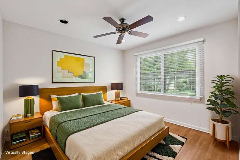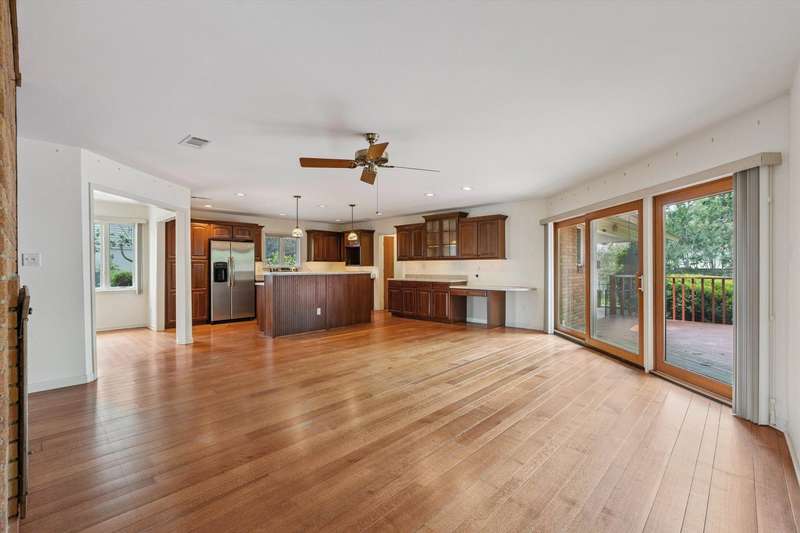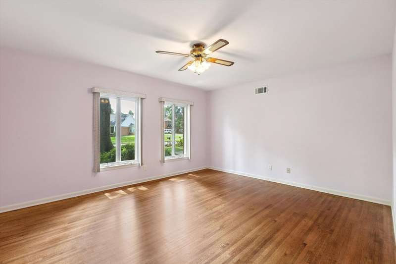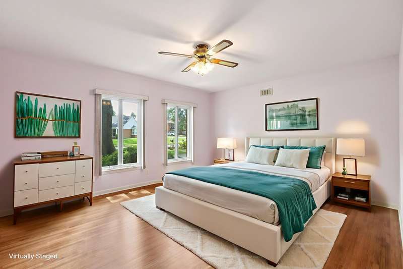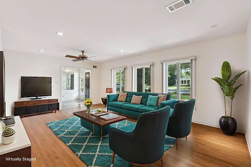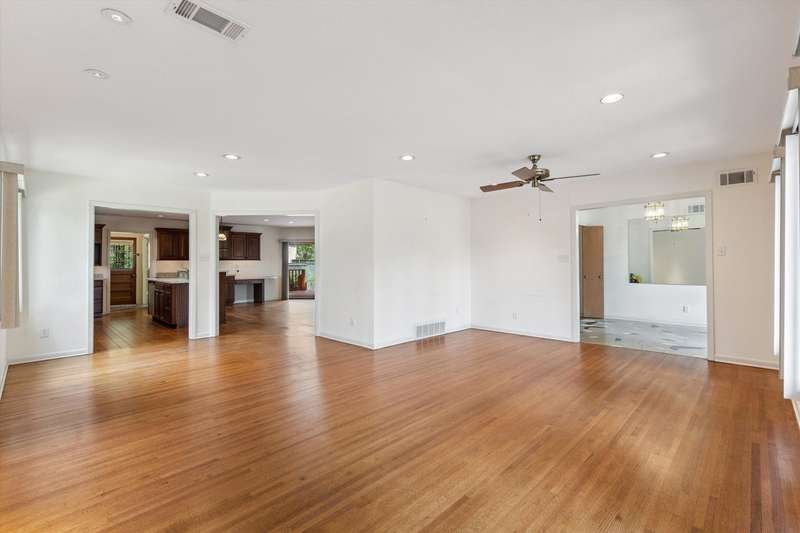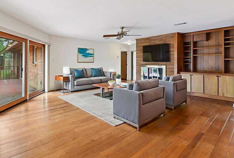 Classic Mid-Century Modern on almost 1/2 acre with irrigation system that is ALL ON ONE LEVEL (2540sf) on a quiet, dead-end street. Updated/Renovated in the past (2007). 4 BR, 2.5 Baths All on One Level w/large Rooms + Hardwoods and Smooth Ceilings! Rare 28x22 Hearth Room/Kitchen w/views of nature’s wonder thru Wall of Windows! Kitchen w/27 Cabinets (many w/roll-outs), 13 Drawers, Desk, Island w/Breakfast Bar! Primary Suite w/access to 27x20 Deck plus bath is updated w/oversized Walk-In Shower & raised vanity! GATED Dbl Carport with extra parking + Garage w/Storm Shelter! All Windows replaced 2007 w/Dbl Panes! From the canopy of shade trees to the breathtaking floral paradise of the rear grounds, this loved family home has been updated and renovated over the years. The basics of an open and inviting floor plan, gleaming Hardwoods and smooth ceilings are here as well as the Modern Kitchen! And, along with everything else, the renovated Primary Bath is what people are wanting TODAY!