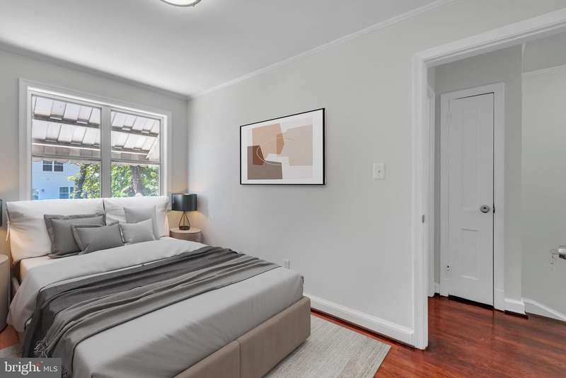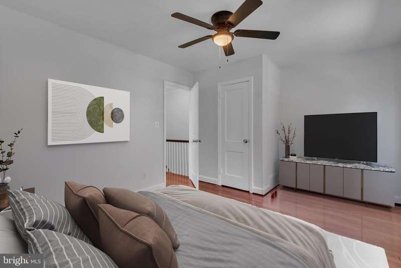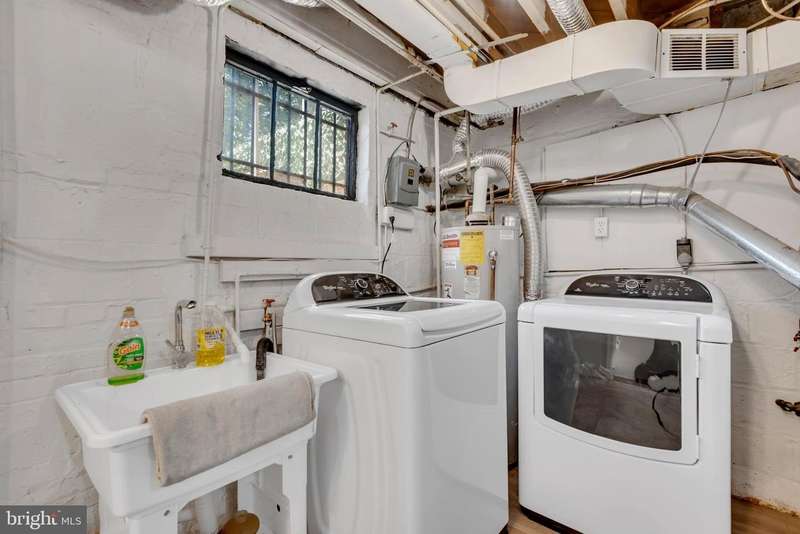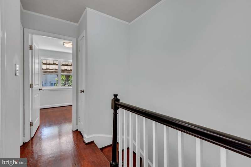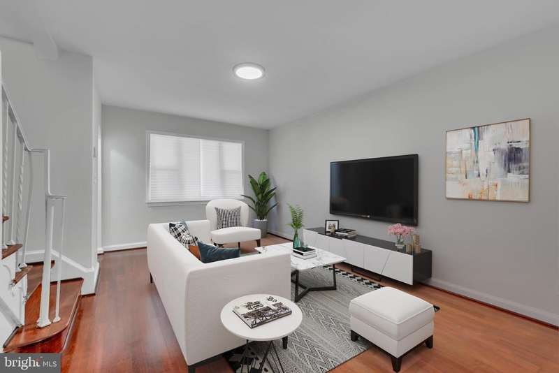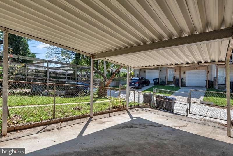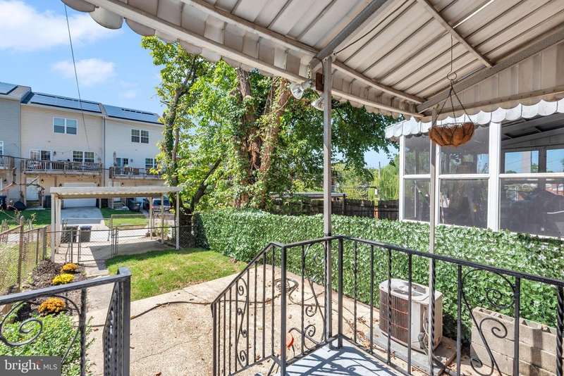 Three-bedroom, one and a half-bath row home in the Brentwood neighborhood of Washington DC . Enjoy a welcoming front porch with plenty of space for outdoor furniture, perfect for relaxing on a Sunday afternoon. Inside, fresh paint brightens the living areas, while the renovated kitchen opens seamlessly to the dining room for easy flow. Dark-stained hardwood floors run through the main and upper levels, creating a warm and inviting feel. The fenced backyard includes a carport with off-street parking for your vehicle, eliminating the need to rely on street parking. The lower level features a half bath, a walkout to the backyard, and a spacious layout flexible enough for entertaining, a game room, or hobbies. A built-in bench spanning an entire wall adds additional function for storage and character.