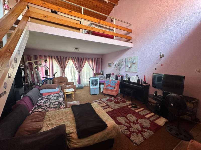 3 Bedroom home with Study & Flat! Spacious 1836 square meter, low maintenance yard. Large area at the front, around the beautiful tree and numerous areas at the back have been neatly paved to cut down on maintenance. Leading off to the side of the entryway is the formal lounge, looking out onto the front yard. From here doorways lead into the dining room, family room with loft and the bachelor flat. All three bedrooms and study have north faced windows and build in cupboards. At the back, freestanding from the home is a laundry with staff room and toilet. Inviting pool lays at the back, with small orchid at the side. At the back of the flat is a small courtyard, with braai area and firepit. (A door leads also out from the family room with loft, this could easily be transformed into a secondary bachelor unit. Safe, neat and quiet part of the very popular Flamwood neighborhood.