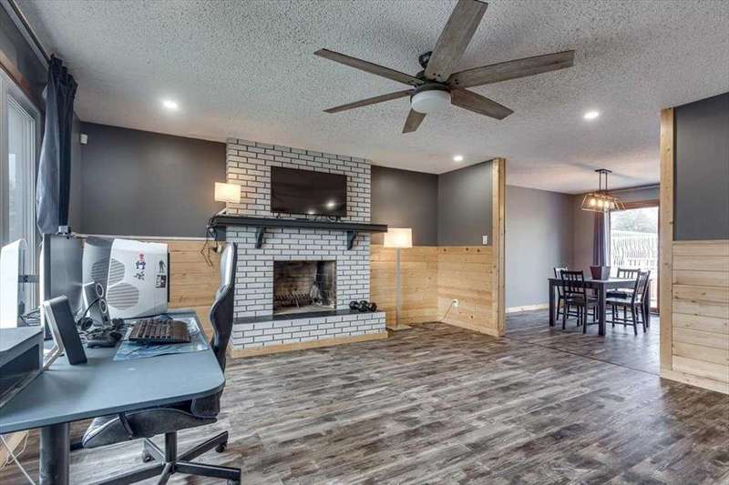 Welcome to this fully developed gem featuring a huge yard and unbeatable proximity to all amenities. This 6-bedroom, 3-bathroom home offers exceptional versatility with a self-contained mother-in-law suite, complete with separate laundry up and down. Enjoy cozy evenings by one of the two wood-burning fireplaces, or entertain guests on the massive deck overlooking the spacious yard. Located near walking trails, schools, and beautiful Bower Ponds, this property blends comfort, convenience, and nature. There is a single carport along with paved driveway for extra parking. Shingles 2016, updated vinyl windows, HWT 2022. Whether you're a growing family or looking for multi-generational living, this home checks all the boxes.