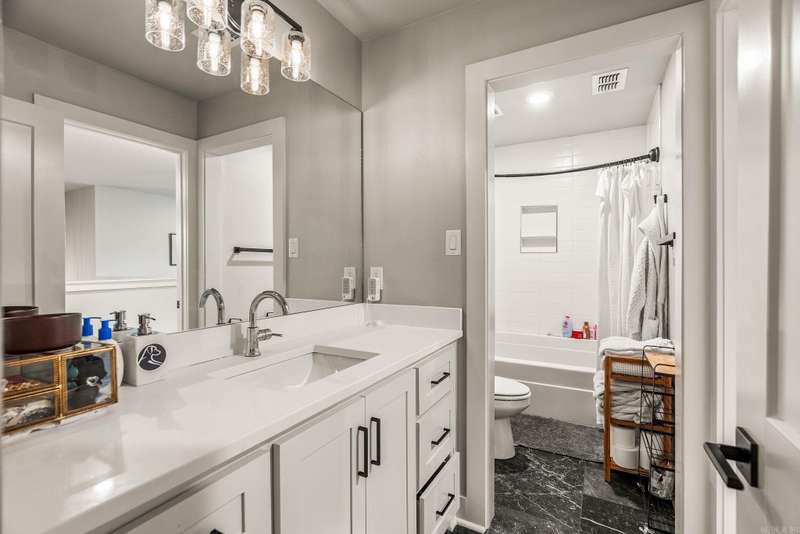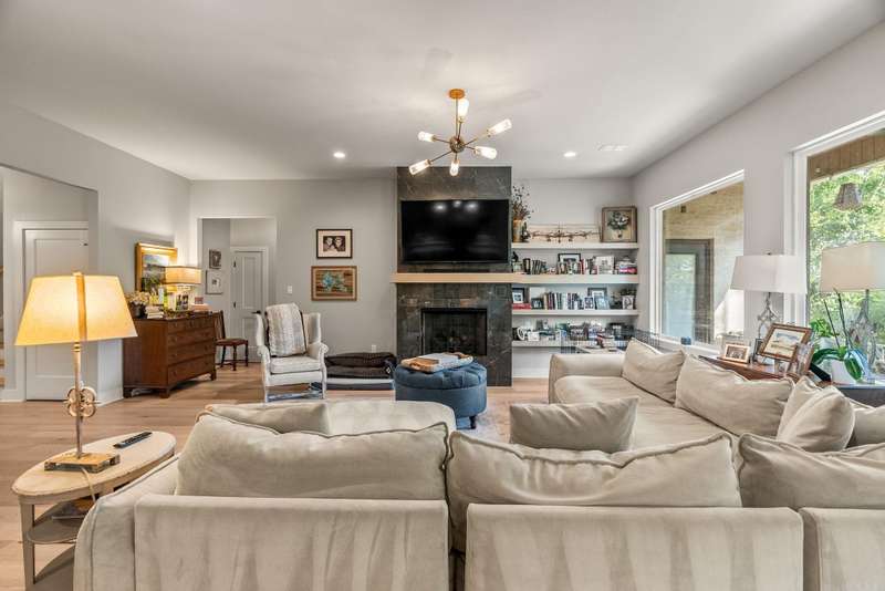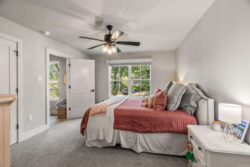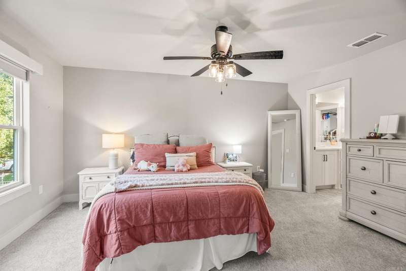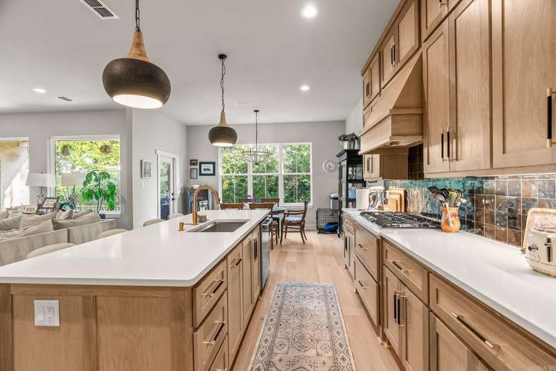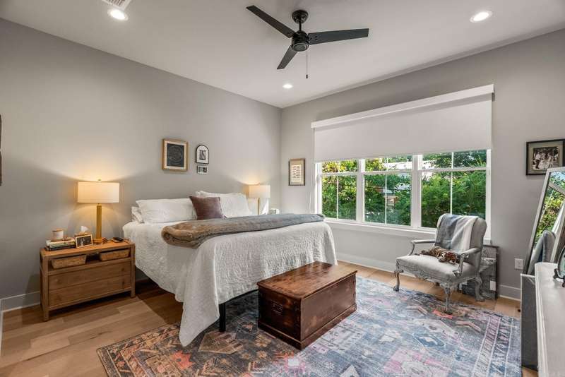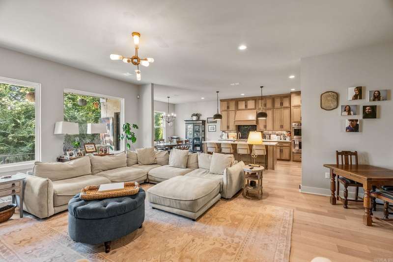Wonderful home built in 2022! Full of natural light, this home both a covered front and back porch with large windows along the back of the house. White oak wood flooring is throughout the downstairs. The kitchen cabinets are a beautiful oak wood and the island is large, providing extra island seating. There is a wet bar that leads into the huge walk in pantry which gives abundant extra kitchen storage. The great room has a gas log fireplace surrounded by built ins. Beautiful primary bedroom with fantastic bath and huge walk in closet is on the main level. A guest bedroom with full bath is also on the main level as well as the laundry area when you walk inside from the two car garage. Upstairs is a kids hangout area at the top of the stairs with four bedrooms off the hangout area. Two full baths upstairs - one is a jack and jill and the other opens to the hallway as well as inside the bedroom. There is a very large heat and cooled storage room as well. This is a fantastic floor plan and feels like a brand new house! Walk to Jefferson elementary, Baker Park and the Cammack tennis courts!