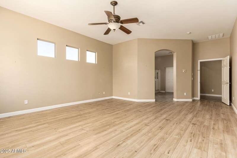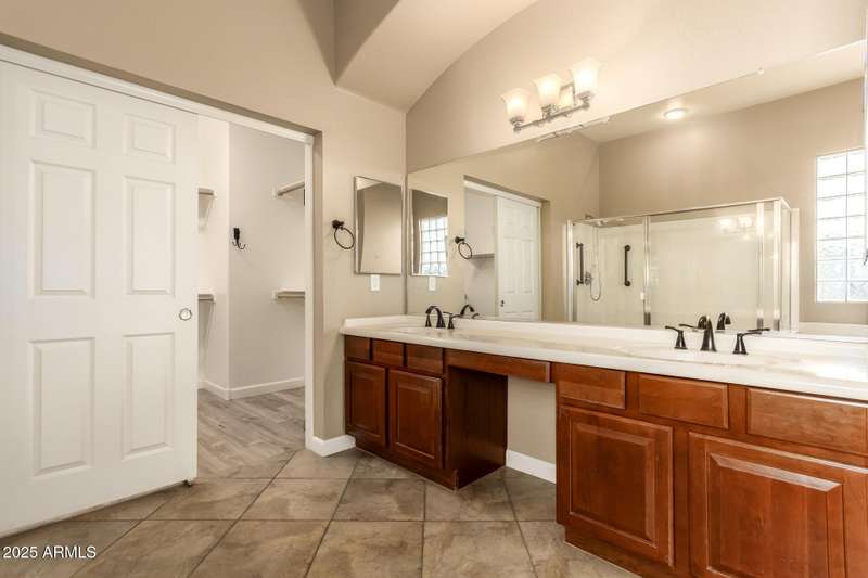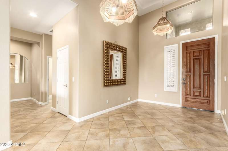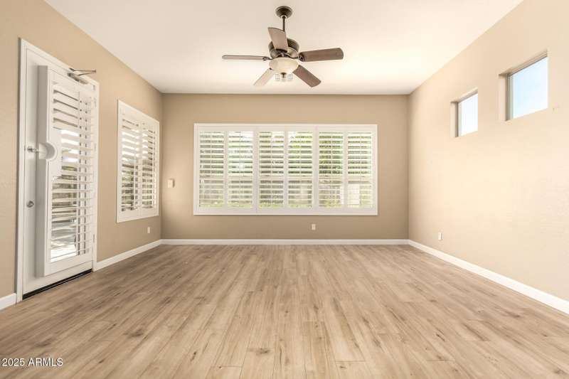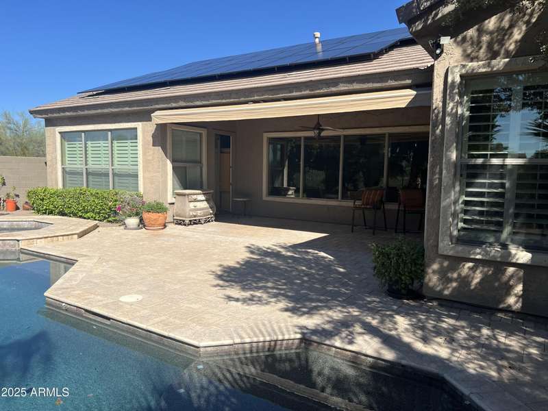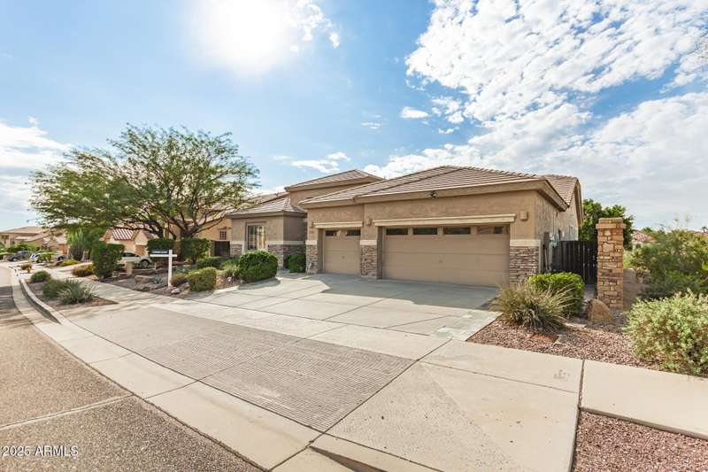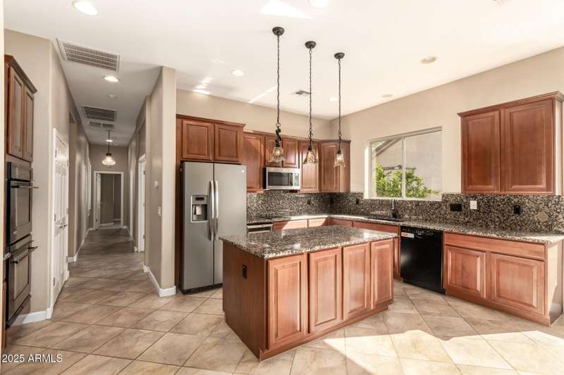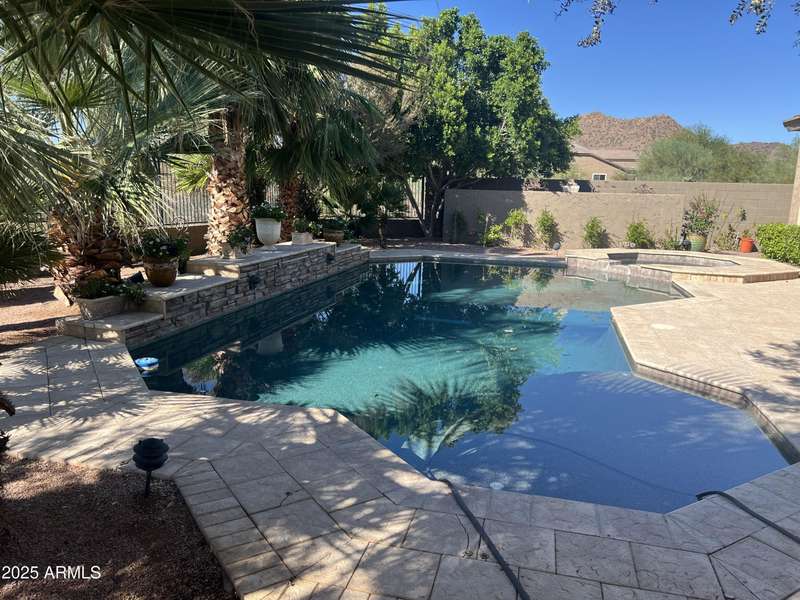 Stunning Single-Level Home with Mountain Views! Beautifully situated on a prime oversized lot, this 3-bedroom, 2.5-bath home offers a versatile floor plan with a den/office, plantation shutters, and multiple living spaces including a great room, formal dining, and separate family room. The gourmet kitchen features double ovens, granite countertops, and a spacious island ideal for casual dining. The primary suite includes a double vanity, separate tub/shower, and a large walk-in closet. Step outside to a private backyard retreat with a sparkling heated pool and spa, soothing water feature, built-in BBQ, and firepit—all enhanced by a natural wash for added privacy. Additional highlights: 3-car garage, double RV gate, and ample parking. This home is a MUST SEE!