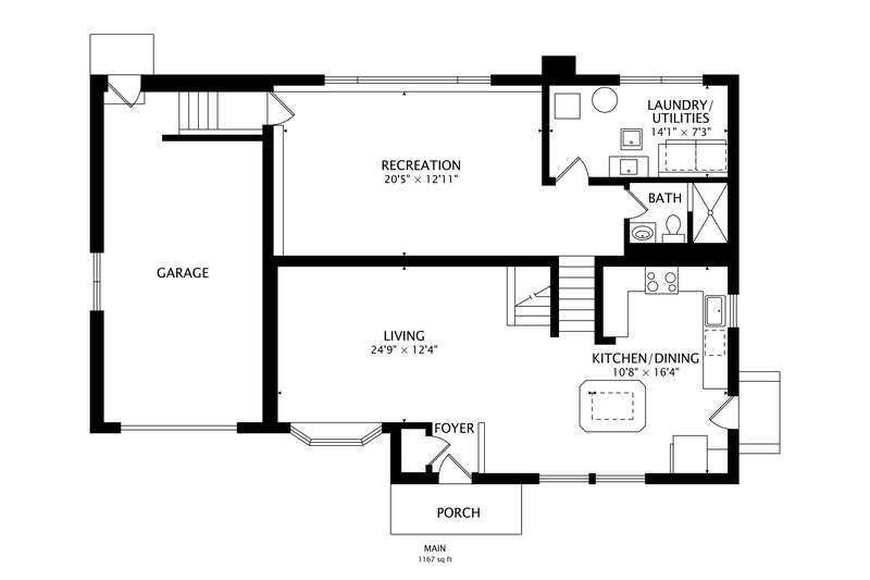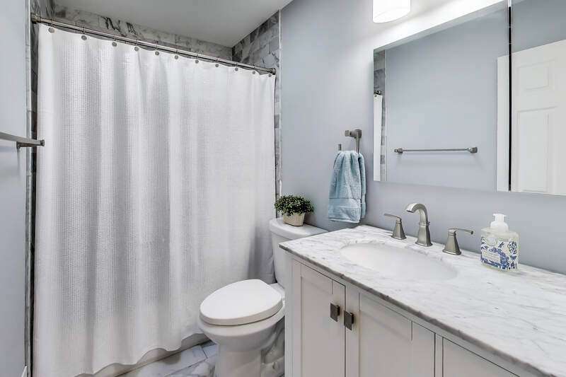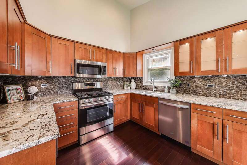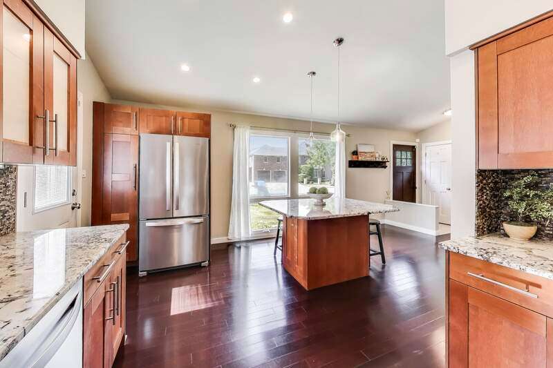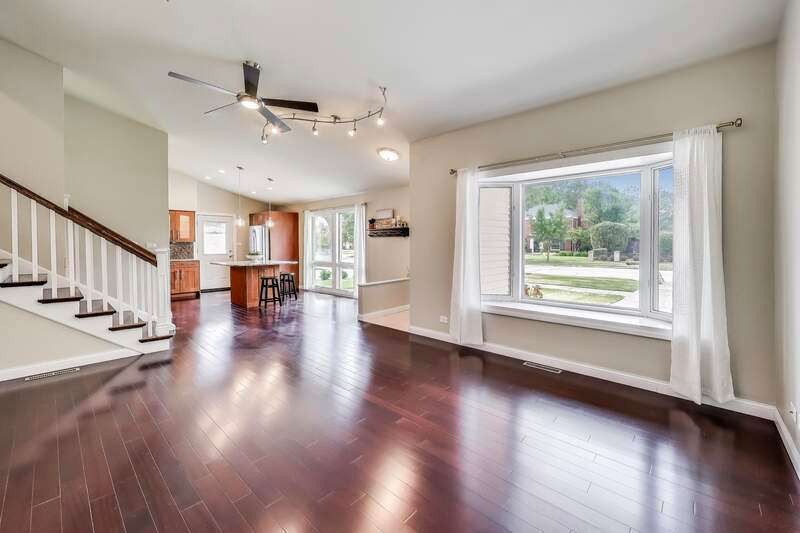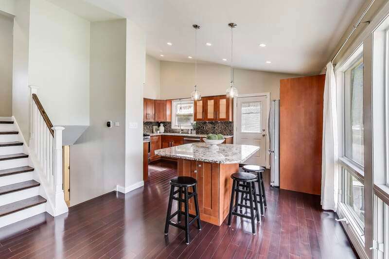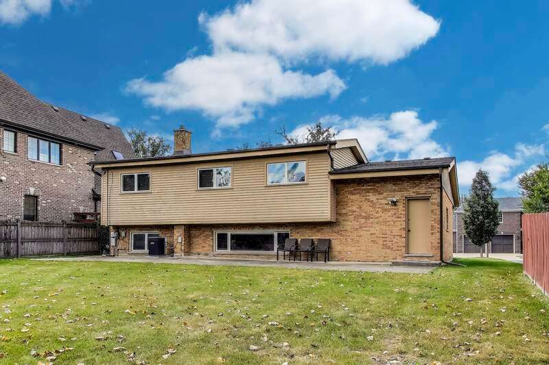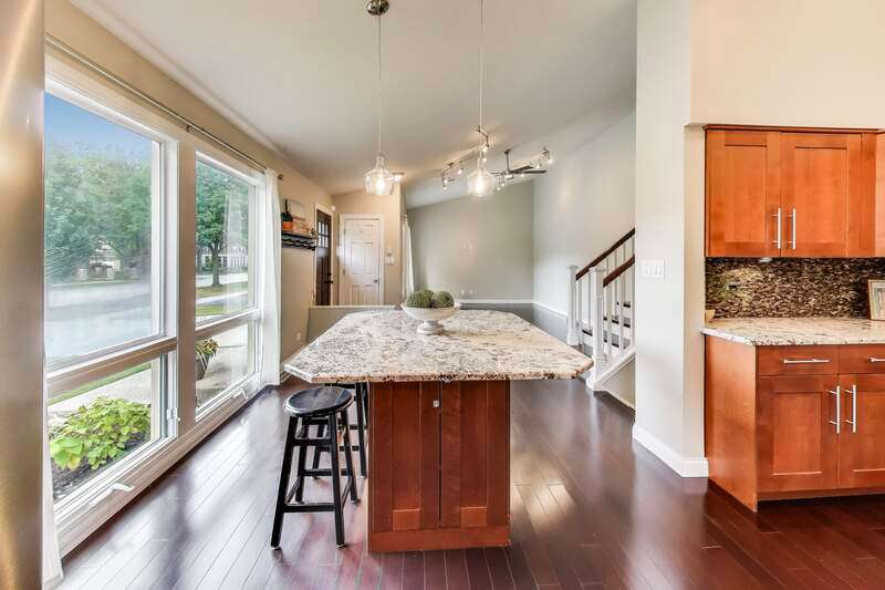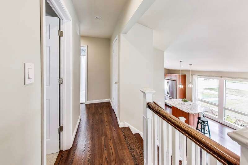 Charming and move-in ready, this beautifully renovated home offers a fresh, classic design in a highly sought-after "in-town" location. The main level was just painted and showcases rich dark hardwood floors and dramatic vaulted ceilings that flow seamlessly into the kitchen. Flooded with natural light from oversized picture and bay windows, the open-concept living and kitchen area is a showstopper! Shaker cabinetry, granite countertops, under-cabinet and display lighting, glass tile backsplash, stainless steel appliances, and a large center island-both functional and perfect for entertaining. Upstairs you'll find three comfortable bedrooms with custom closets and a beautifully updated full bath. The lower level expands your living space with a spacious rec room flooded with natural light from daylight windows and another fully renovated bath. Step outside to a surprisingly large private backyard, complete with a full-width patio and plenty of space to design the outdoor retreat of your dreams. This one won't last - schedule your showing today!