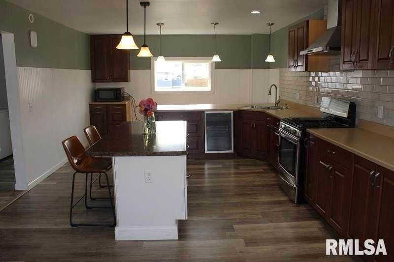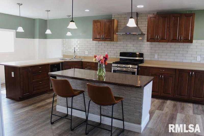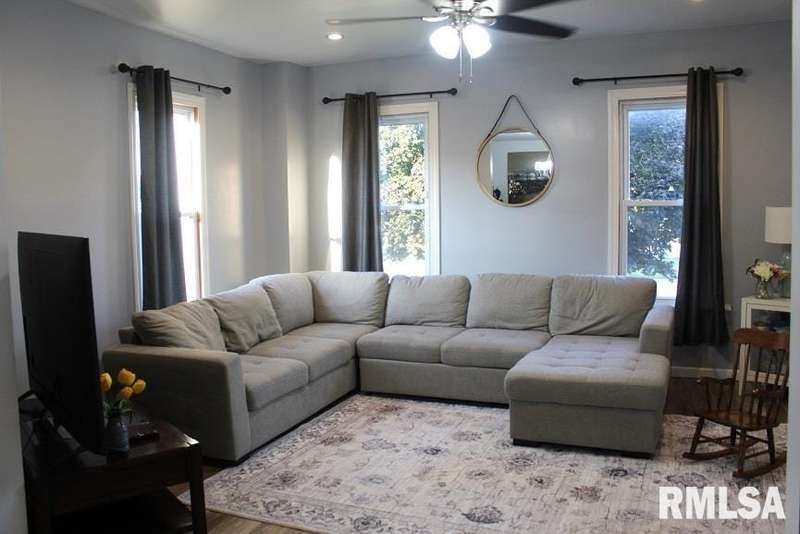 Located just 1 block from Liberty Park with a playground and new splash pad....this lovely 5 bedroom, 1.5 bath home with 1 car garage awaits its new owners. This home was completely gutted & remodeled in 2020 and 2021 and is in move in condition. The main floor features a spacious kitchen with beautiful cabinetry, glass backsplash, motion activated kitchen faucet, a large center island, snack bar, a wine cooler & Bluetooth lighting, a formal dining room with open staircase, a living room, den, a half bath and laundry room. Enter the second floor up the open staircase with stair lighting to a full bath with large ceramic tiled shower, vanity with single bowl sink, stool & Bluetooth lighting & 5 nice bedrooms with one being currently used as a dressing room. There is nothing to do but move in and enjoy. Per owner: In 2020 & 2021 this home was gutted & redone with new wiring, plumbing, insulation, drywall, lighting, flooring, kitchen, baths, roof, furnace, central air, windows, doors & vinyl siding. Gutters & downspouts were new 07-2024. Don't miss seeing this lovely home.