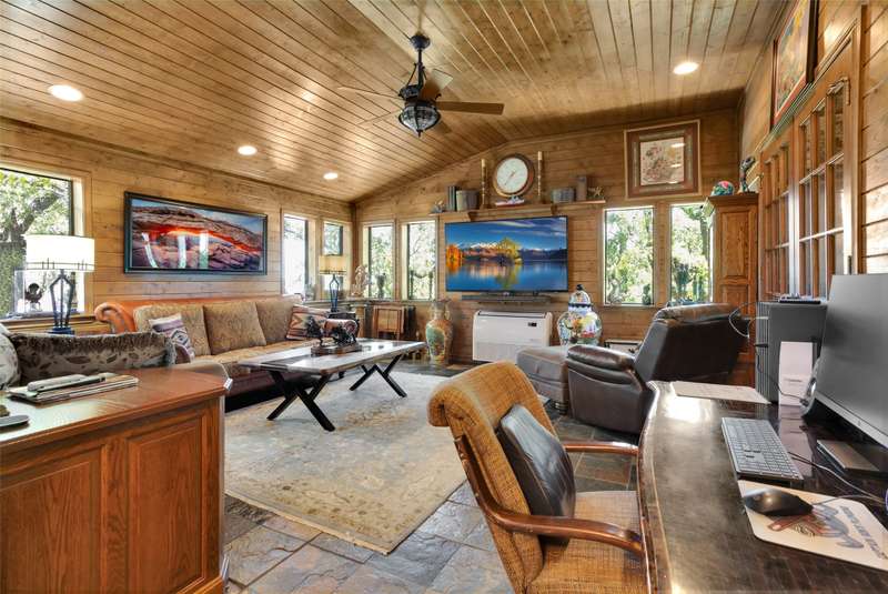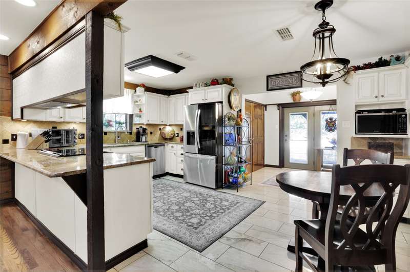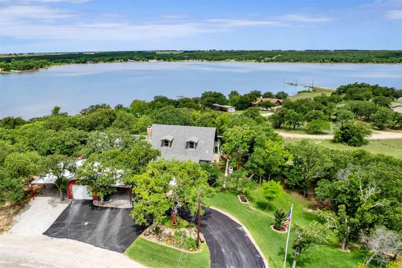 Stunning Log Cabin with breathtaking panoramic views of Lake Nocona sits on 1.26 acres. Bring the boats and the golf carts to enjoy this awesome Lake house in Nocona Hills. This 2735 sq. ft. home, has plenty of parking and spaces for those fun lake life toys with a detached metal garage and 2 covered 2 car carports. Nice Asphalt circle drive that provides ample parking for guests. Covered front and back porches for entertaining while enjoying the gorgeous lake views. Huge 21 x 19 primary bedroom on the main floor and a large ensuite bathroom with walk in shower and walk in closet. Spacious kitchen with granite countertops over looks the large dining room with decorative fire place. Large family room walks into a drop down living room area with lots of windows to enjoy your lake house atmosphere. Excellent floorplan to entertain with all your family and friends to spread out and enjoy all the features this beautiful home has to offer. Nice size bedrooms upstairs with a large shared full bath accommodation. Seller installed 2.5KW Windmill a 2.5 KW Rotating Solar panels tied to the house and grid. Propane Tankless water heaters and propane floor heaters. Back yard has an excellent view of the lake with a private setting and nice mature shade trees. Nice pergola and built in grill for fun BBQ parties with a fire pit. This home is surrounded by the tranquility of nature as you will often see deer all around the property. Nocona Hills offers a 24-hour guarded gated community with access to two private lakes (one listed as top 5 Bass fishing in Texas) a community boat ramp and dock, as well as an 18-hole golf course with driving range, an airstrip, campgrounds with RV sites, and more. Fiber optic high speed internet is also available. Nearby surroundings include historic downtown Nocona, a winery, brewery and just a short drive to Saint Jo, Muenster and popular Casinos.Dont miss this one. The Club house and pool are currently under Remodel for the community so Exciting