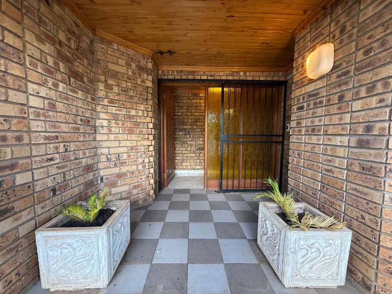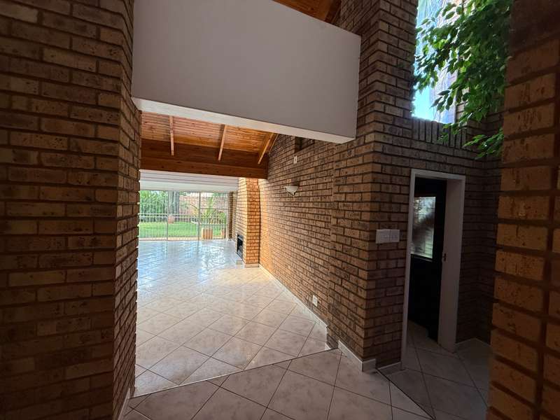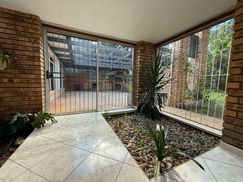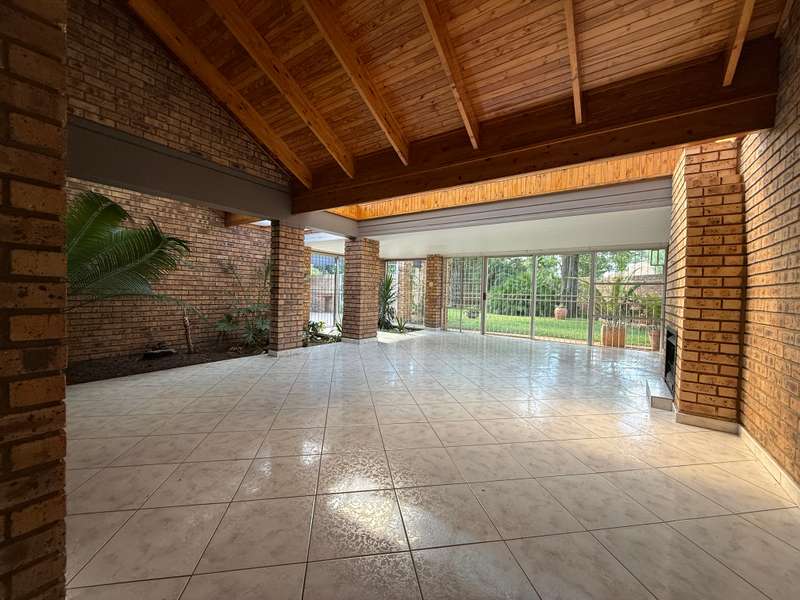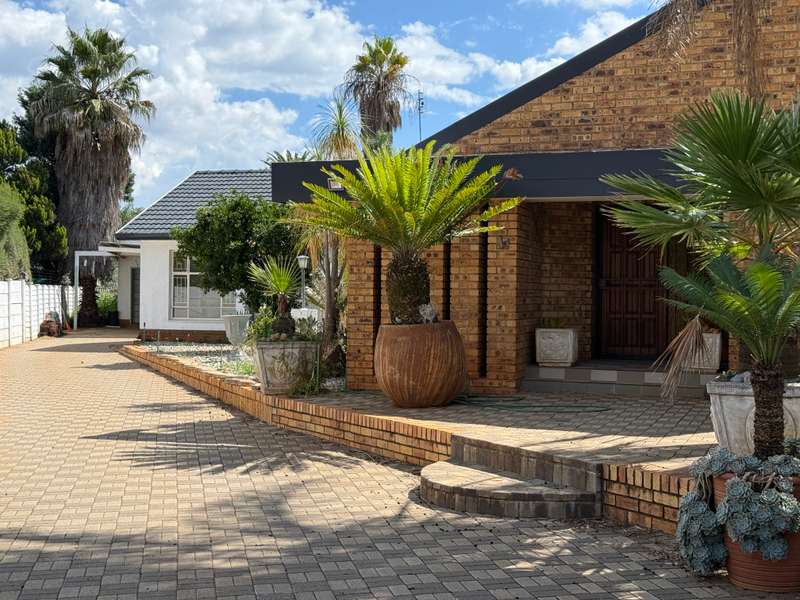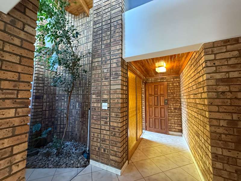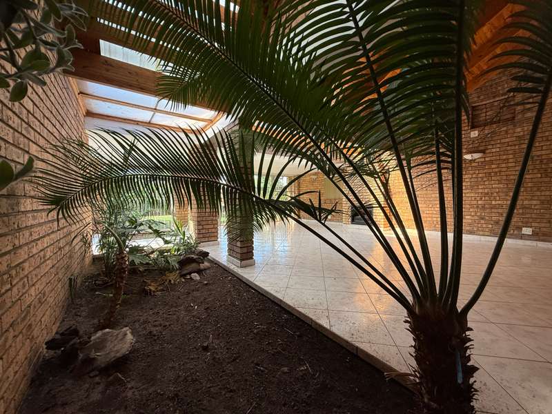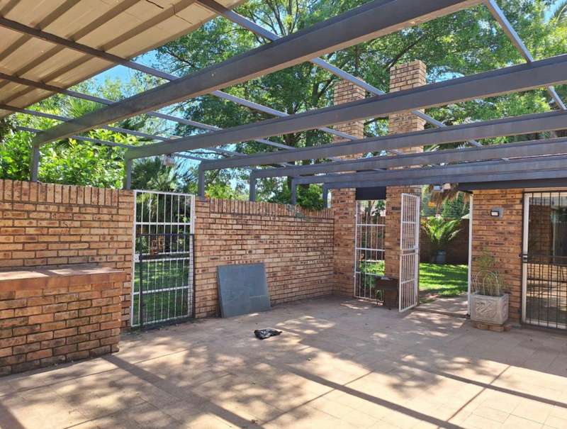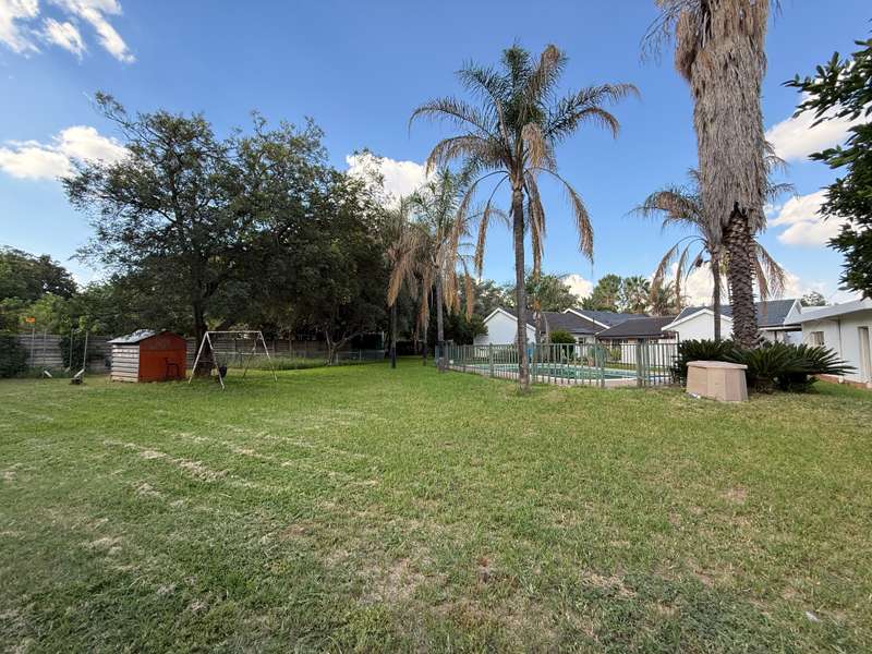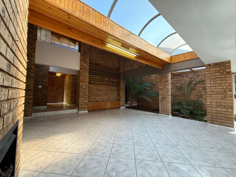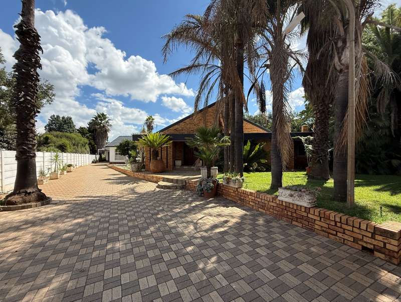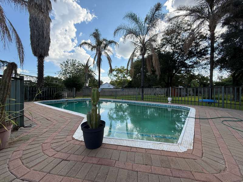 Situated in quiet residential street, close to new shopping centres, restaurants, doctors, and private hospitals. The large 2666 square meter stand is equipped with 2 Boreholes and irrigation system. Further additions include a Swimming pool, tennis court and outdoor entertainment/braai area. Entertainers dream! This spacious home is ideal for the extended family, 2 of the 5 bedrooms have ensuites. The Kitchen has granite tops, gas stove, porcelain tiles and walk in pantry. Two dining areas, one right alongside the kitchen, for that all important family mealtime. Lounge is equipped with a gas fireplace and Sky roof. For those who want to or need to work from home, a study with built in shelving. There is eve a bar area, to relax after a long day. Three and a half bathrooms. Double garage with double steel carport at the front is freestanding from the home, could easily be transformed into a flat.
