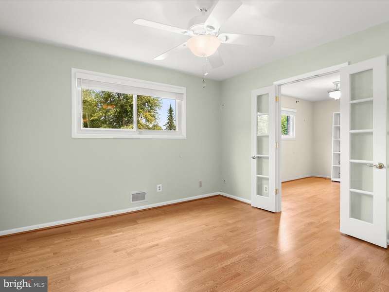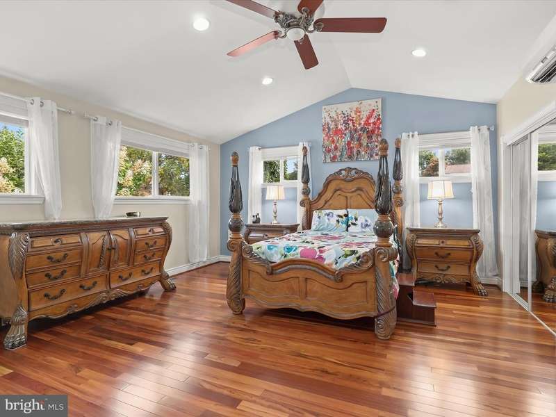 Introducing this three bedroom, two and a half bathroom home set on a 0.47-acre corner lot in the coveted Stevenson community. Graced by beautiful landscaping, this home offers a peaceful setting while still being minutes from shopping, dining, and major commuter routes. Generous side and backyards provide plenty of outdoor space for gardening, entertaining, or play, giving the home a sense of openness and versatility. Step inside to a welcoming foyer that leads into the spacious living room, where a cathedral ceiling, custom plantation shutters, hardwood floors, and a cozy gas fireplace create a warm and inviting atmosphere. The kitchen is appointed with stainless steel appliances, gas cooking, granite counters, and a decorative tile backsplash, blending both function and style. Just steps away, the dining room is enhanced with elegant crown molding and opens through a glass door to the deck and backyard, creating an easy connection for indoor and outdoor living. The primary bedroom suite has been expanded to create a spacious retreat. The addition features a sitting room, while the bedroom boasts a soaring cathedral ceiling, two closets, built-ins, and a dedicated mini-split system for comfort throughout the year. Completing the suite is a luxurious bathroom featuring a walk-in steam shower with bench seating and dual shower heads. Rounding out the main level are two additional bedrooms with a connecting French door and a second full bathroom with a tub shower. Downstairs, the lower level extends the home's living space with a versatile recreation room and half bathroom, perfect for hobbies, gatherings, or casual lounging. A spacious laundry room with walk-out access to the yard, along with a utility room and separate storage room, adds convenience. Outdoor living is equally enjoyable with a private fenced area that includes a deck and a tranquil pond that enhances the setting. Additional open yard space offers room to spread out, and a storage shed is ideal for tools and outdoor essentials. A circular driveway and two-car garage provide plenty of parking.