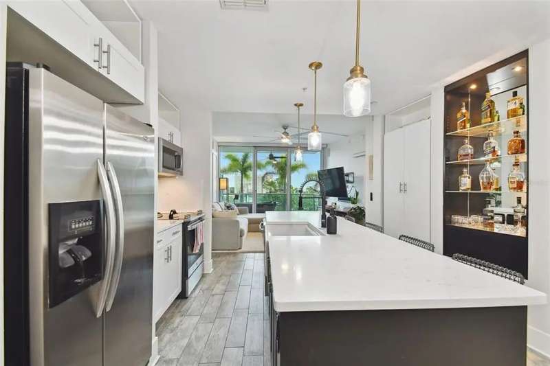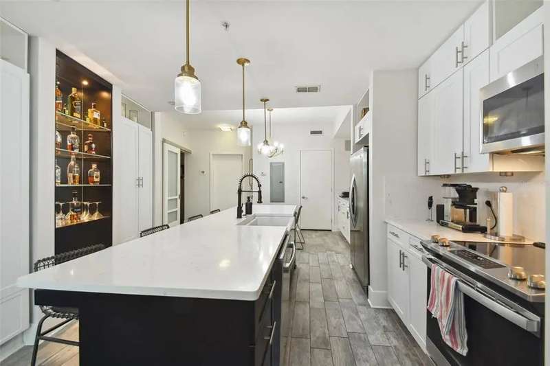 This beautiful 2 bedroom/2 bathroom unit with balcony has been recently updated with premium finishes and optimized for the best downtown/Channelside living and entertaining potential. The gourmet kitchen has a large center-island with brand new quartz countertops, wood cabinetry, and new stainless steel appliances. Additional countertop and cabinet spaces have been added in the dining area as well. Pairing the newly optimized dining area is an added dry bar. New tile floors throughout the unit with upgraded lighting and ceiling fans/light fixtures in each room. The unit also has a new washer and dryer set. Accent walls throughout the unit add character as well. Live relaxed with a shiplap design in the master bedroom, and geometric design in the family room. The master bedroom has a spacious walk-in closet, and an en-suite bathroom which includes a vanity, double-sinks, separate tub, and standing shower. Guest bedroom is connected to the 2nd full bathroom. Resort-like amenities including a clubhouse, fitness center, pool/spa, dry sauna, and bar area. HOA fee includes Spectrum basic cable/wireless internet and 24/7 front desk concierge. This building is located in the heart of Channelside near Water Street, Sparkman Wharf, Amalie Arena, and The Tampa Riverwalk with entertainment and fine dining footsteps away. This home includes one gated parking space and the option to apply for a free residential street parking permit (with proof of two utility bills). Don’t miss your chance to own this move-in ready condo in one of Tampa’s most desirable neighborhoods — schedule your showing today!