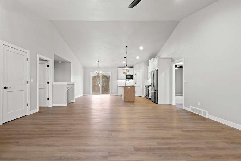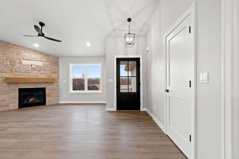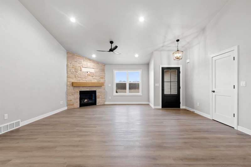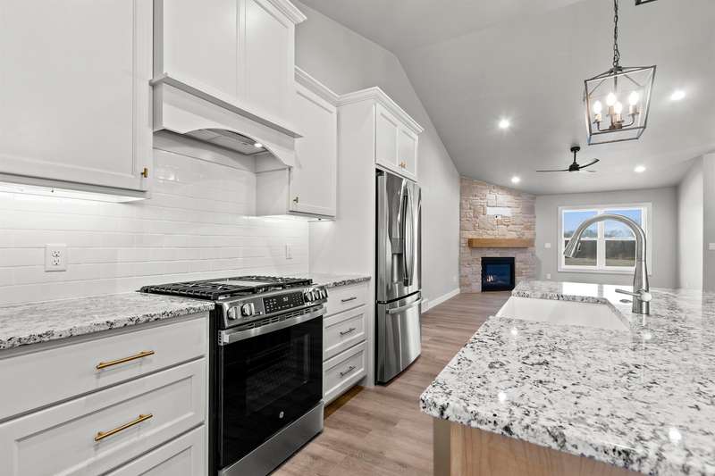 Sun-filled ranch w/ character & many features over & above a completed construction including finished 3-stall garage, basement access from garage & a transferrable lifetime window warranty. Sitting on a spacious lot & offering an open-concept layout w/ soaring ceilings & beautiful LVP floors. Stone surround fireplace w/ mantel in living room. Stainless steel kitchen appliances & gas stove. Enclosed range, granite counter tops, large center island & tiled backsplash. Primary suite has huge walk-in closet & bath w/ double vanity & large shower. Solid wood doors throughout. LL is partially stubbed for future finishes w/ egress windows. Quality materials & craftsmanship w/ a fabulous layout. 1yr limited builder's warranty. Final grade. Central AC.