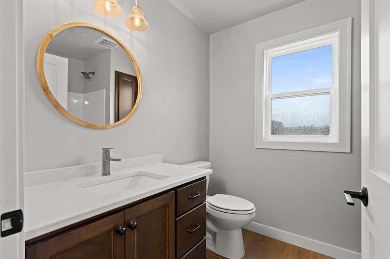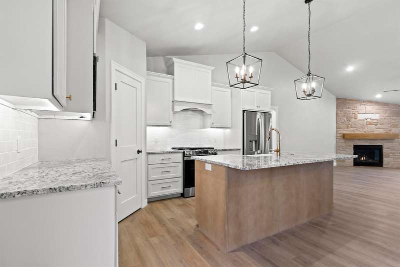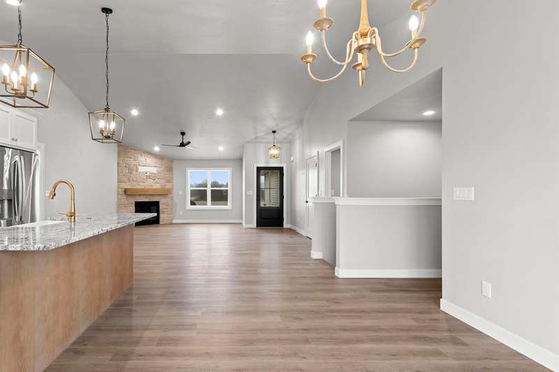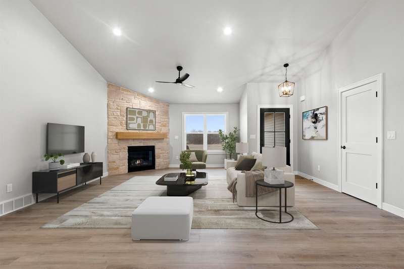 Sun-filled ranch w/ character & many features over & above a completed construction including finished 3-stall garage, basement access from garage & a transferrable lifetime window warranty. Sitting on a spacious lot & offering an open-concept layout w/ soaring ceilings & beautiful LVP floors. Stone surround fireplace w/ mantel in living room. Stainless steel kitchen appliances & gas stove. Enclosed range, granite counter tops, large center island & tiled backsplash. Primary suite has huge walk-in closet & bath w/ double vanity & large shower. Solid wood doors throughout. LL is partially stubbed for future finishes w/ egress windows. Quality materials & craftsmanship w/ a fabulous layout. 1yr limited builder's warranty. Final grade. Central AC. Lawn installed.