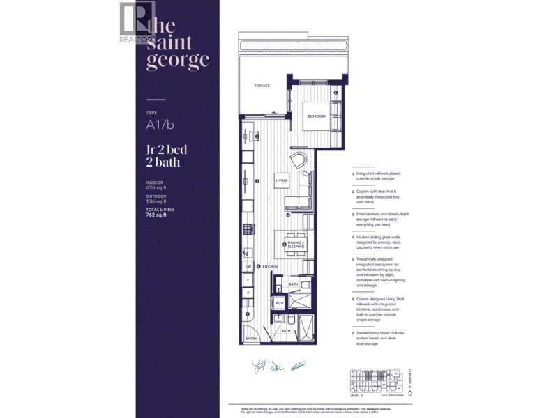 Presale Assignment. Jr Two Bedroom; 2 bath, 626 sq ft, 136 square ft terrace (there are only 4 of this plan that has the larger terrace) For Sale in Mount Pleasant, Eastvan. Custom built ins; shoe storage and bench, entertainment unit, desk, and lots of storage. Sleek glass room divider turns the dining room ( with custom Murphy bed and closets) into a 2nd bedroom... with it´s own ensuite bathroom! 9' ceilings, white oak engineered hardwood flooring, A/C, Fully-integrated kitchens w. Bosch and Blomberg appliances and custom cabinets and terrazo stone backspash and countertops. Prominant location close to great shops and restaurants. The new Broadway and Main Skytrain station 9 min.walk away. 1 Parking & 1 storage locker. 2 / 5 / 10 new home warranty Estimated completion September 2025. (id:58403)