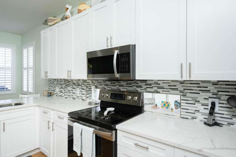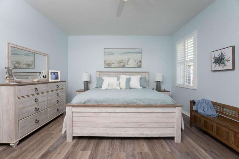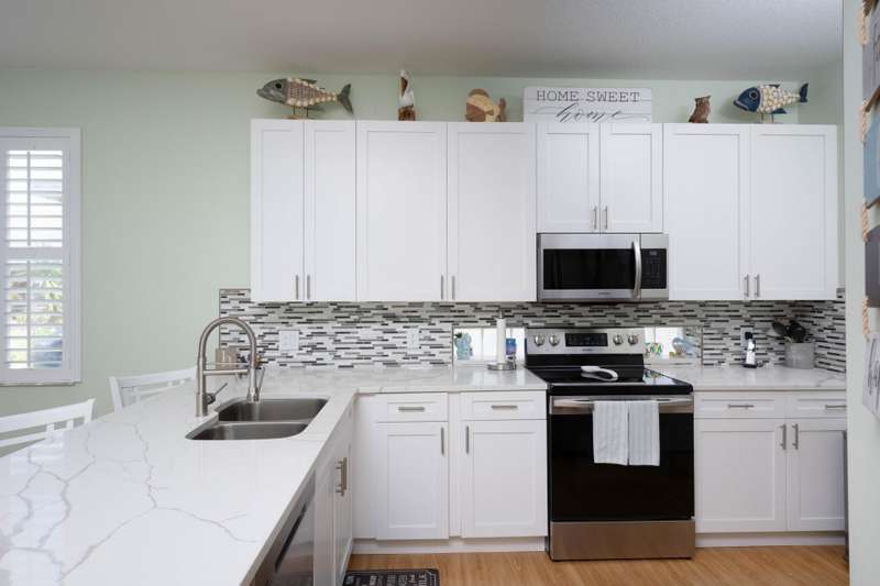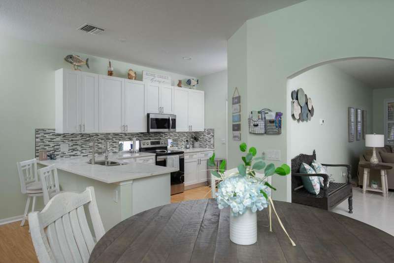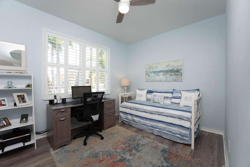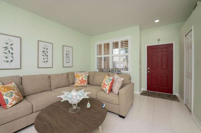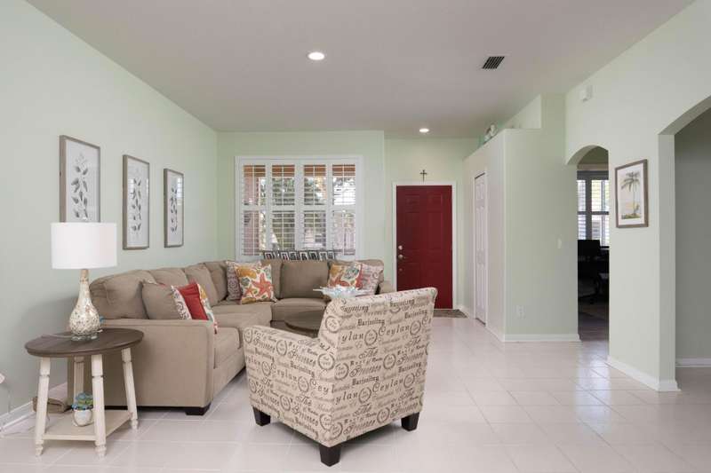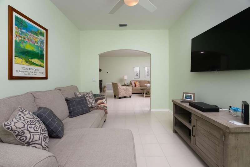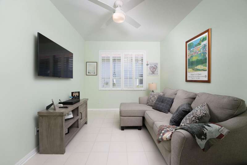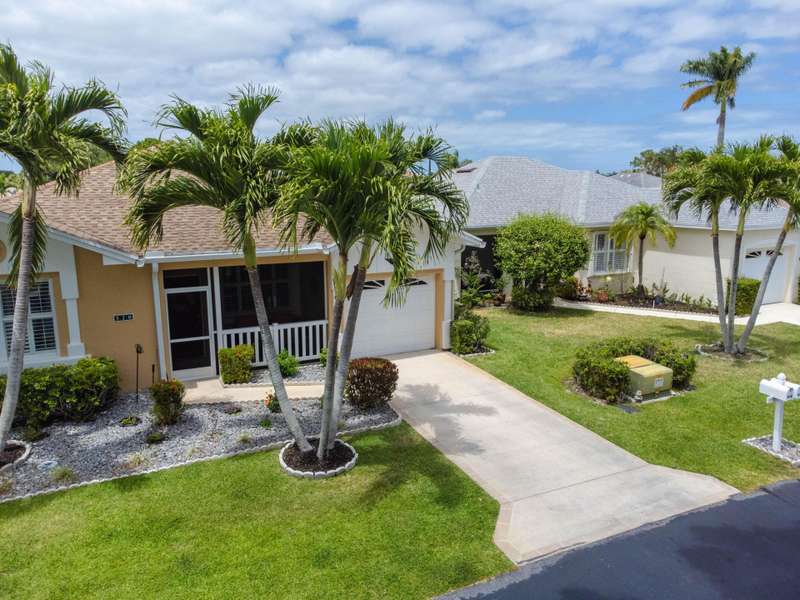 A gorgeous, well-maintained home nestled in the Isle of San Marino, of Kings Isle is ready for you! This 2 bedroom, 2 bathroom home complete with a spacious living area and separate den will make daily living a breeze. A bright, completely renovated kitchen with quartz counters and newer floors updated in 2020, plantation shutters throughout, updated bathroom shower doors and fixtures, newer exterior paint and gutters and a newer 2023 water heater are just a few of the gems in this home. Enjoy the warm Florida evenings in the comfort of the screened front and back patios. Enjoy the communitys pool, clubhouse, pickleball and tennis courts, along with quiet streets for biking. Located in St. Lucie West, this active 55+ community is close to lots of shopping, entertainment and I-95.
