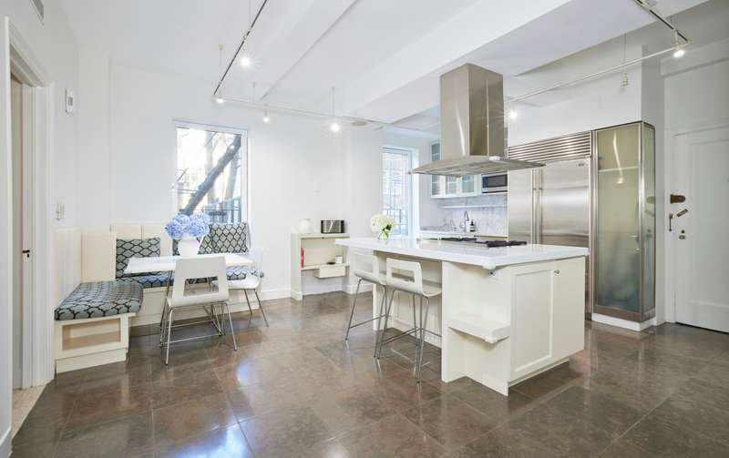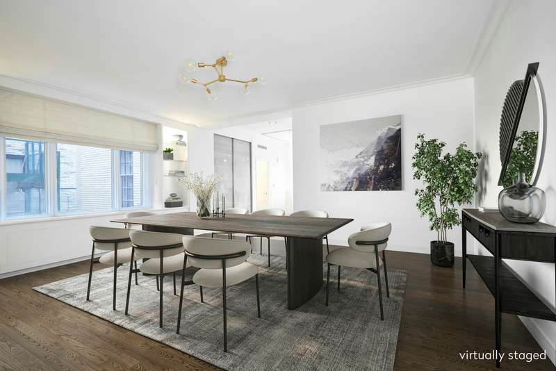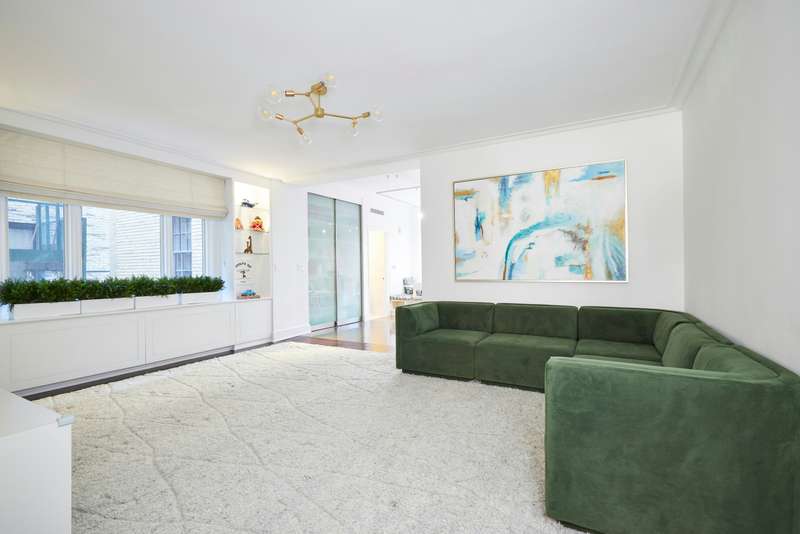 Sophisticated 8 into 7 room renovated home located in a premier prewar cooperative just off Park Avenue. This splendid apartment has a classic layout that provides for both gracious entertaining and comfortable family living. One enters this elegant residence from a semi-private elevator landing into a 23" entrance gallery leading to the over-sized living room with wood burning fireplace, custom bookshelves and sunny, tree-lined southern exposures over 72nd Street. On the other side of the gallery is the voluminous windowed formal dining room which is currently used as a family room. Adjacent is the enormous chef's eat-in-kitchen with a substantial island and counter seating. Details include: marble countertops, copious storage and Wolf, Subzero and Miele appliances. There is a custom corner banquette for casual dining with 2 large windows overlooking townhouse gardens. Off the kitchen is a laundry room with vented washer/dryer and a bedroom with a separate bath.