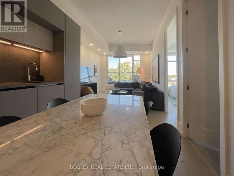 Experience the art of understated elegance at Nahid on Broadview, an intimate boutique residence in the heart of Playter Estates. Designed for those who value privacy, refinement, and timeless design, this exclusive building offers a rare sanctuary in one of Toronto's most coveted enclaves. This Furnished 2 Bed+Den, 2-Bath suite possesses a unique balance of quiet luxury, city-living, and design. The Developer's original interior layout was reconfigured by a private & exclusive designer, ensuring a harmonious flow, intimacy, and bespoke detailing. Refined finishes include: wide-plank hardwood oak floors, custom + solid 8-ft. core single and French-doors, and more. The Italian Muti kitchen is a masterpiece of both form and function, complemented by custom engineered countertops, fully integrated Miele appliances, touch-activated faucet, and cabinetry that blends beauty with utility. 9ft ceilings and expansive windows bathe the space in natural light, enhancing the serene atmosphere and highlighting the suite's luxury finishes. Smart fingerprint ID suite access, digital concierge, built-in security system, combined with advanced soundproofing and a limited number of suites ensure a secure, peaceful, and exclusive environment rarely found in urban living. Perfectly positioned: just steps from Broadview Subway Station and moments from The Danforth, Yorkville, Riverdale, and more, Suite 504 affords effortless access to many of Toronto's most vibrant neighbourhoods, as well as the city's unique and extensive ravine network, yet always welcomes you back to the quiet luxury of your private retreat. Come home to Suite 504: a statement of refined living for those who seek distinction without ostentation.