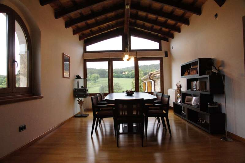 This beautiful farmhouse is located in a very peaceful environment surrounded by nature, but is perfectly connected with all amenities and Girona airport is just a short distance away as well as the Vallter 2000 ski resort and Barcelona. The country home enjoys an expansive 38 hectare wooded plot and measures at 1200m2. It has been renovated using excellent materials and comes with six en suite double bedrooms, an indoor patio and a wellness spa comprised of a massage room, a Finnish sauna, a Turkish bath and a covered out door pool. You could also fit some stables. The house includes heating and air conditioning.