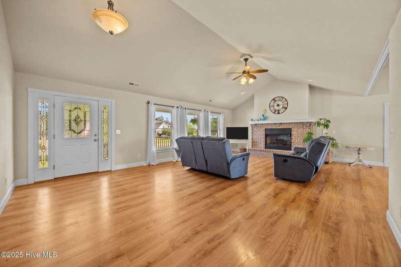 Price Improvement! Priced below a recent full appraisal! Spacious Single-Level Home on Expansive Corner Lot in Aydlett. Step into this beautifully maintained and designed 3BR/, 2.5-bath home with bonus room/office, located on a spacious corner lot that is just under an acre in the peaceful community of Aydlett. This home offers the ease of single-level living and a layout that's perfect for both everyday enjoyment and entertaining. The heart of the home is an expansive great room with vaulted ceilings and a cozy gas log fireplace, flowing seamlessly into the dining area and spacious kitchen. The kitchen is a chef's delight, featuring rich cabinetry, stainless steel appliances, and a sunny breakfast nook overlooking the covered back porch and expansive backyard?ideal for morning coffee or evening gatherings. The large primary suite is a true retreat with vaulted ceilings, a luxurious ensuite bathroom featuring a jetted soaking tub, a stunning tile shower, and a spacious walk-in closet. Two additional bedrooms, a full bath, and a versatile bonus room provide ample space for family, guests, hobbies, or a home office. This stunning brick home combines comfort, functionality, and timeless style?all in a setting that invites connection and relaxation. Located just a short stroll from the scenic Currituck Sound, this centrally located home is only 30 minutes from the beaches of the Outer Banks and 35 minutes to the Virginia border?offering the perfect blend of privacy, accessibility, and coastal living in one ideal setting. Don't miss your opportunity to own this inviting and well-appointed home?perfect for relaxed living and memorable moments.