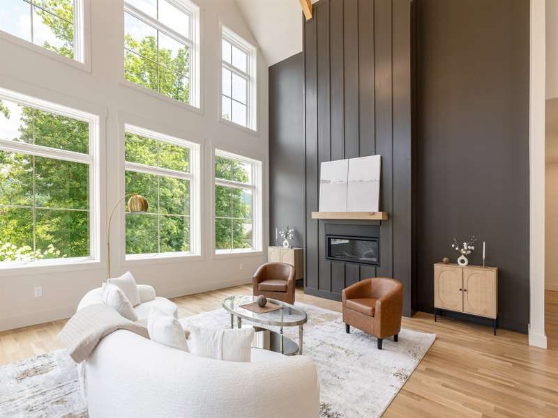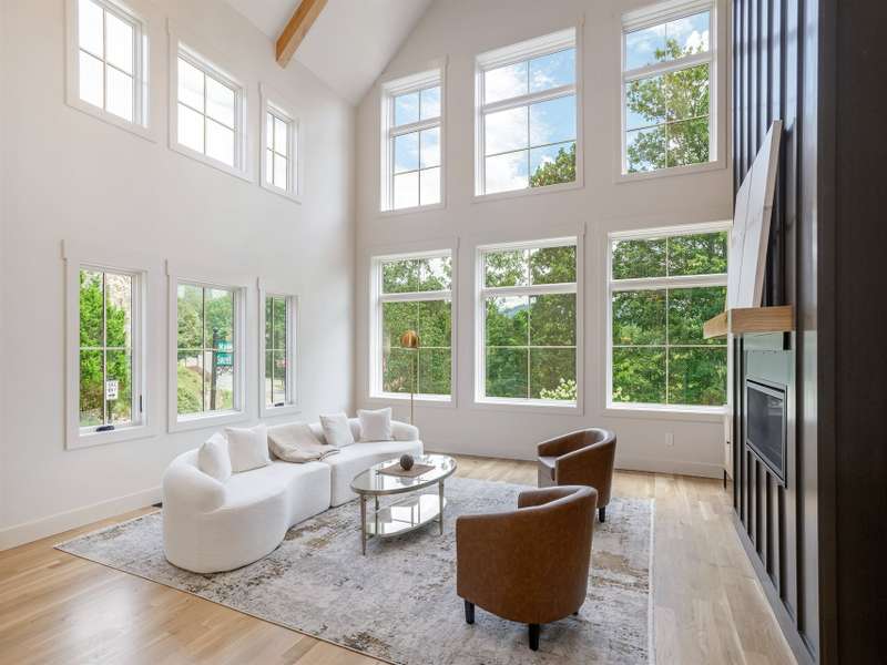 Stunning new construction in Thoms Estate! This custom-built home in the heart of North Asheville offers main-level living with a spacious open floor plan & high-end finishes throughout. The great room has soaring +20ft ceilings, abundant natural light, & mountain views. The main level primary bedroom featured vaulted ceilings, a natural gas fireplace, & an ensuite bath with walk in shower & soaking tub. The laundry room, pantry & mud room feature heated floors. Easy entry with age-in-place features including an elevator for access to the second level. Relax on the front porch & take in the mountain views or entertain guests on the large back patio complete with a natural gas stub-out for grilling. Extremely convenient location minutes away from Fresh Market, Ingles, Beaver Lake and the Country Club of Asheville. Vibrant downtown Asheville is less than 4 miles away. Thoms Estate amenities include a gated entrance, walking trails, community garden, pavilion area, & pickleball courts.