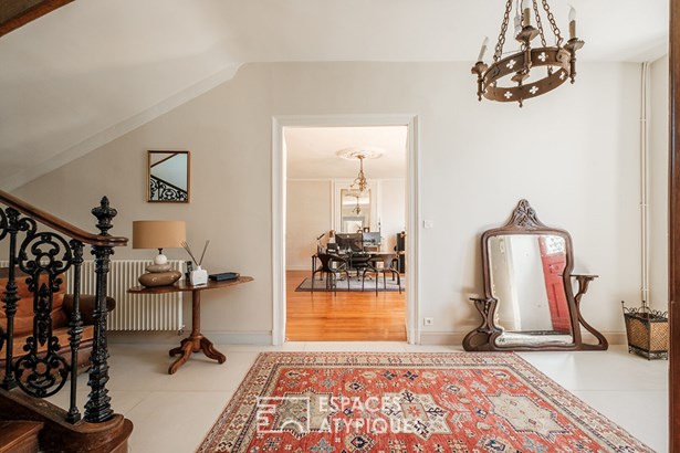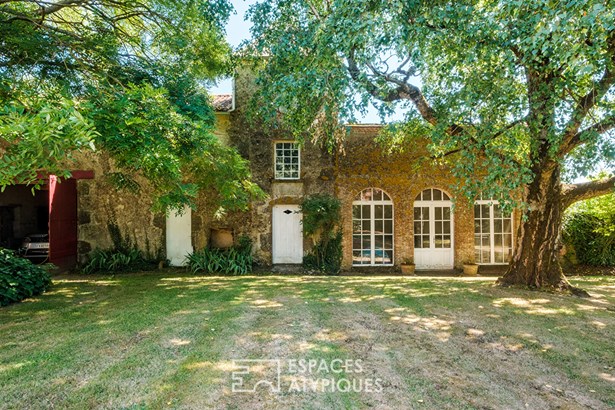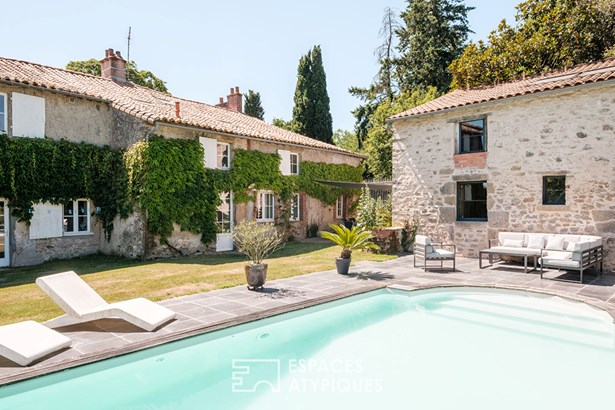 Nestled on the edge of Parthenay, this characterful residence offers approximately 465 sqm of living space in the heart of a landscaped park of nearly 2 hectares. A place imbued with calm and harmony, where classic architecture blends with a contemporary lifestyle. Behind its discreet facade, the house reveals large spaces bathed in light. On the ground floor, the elegant living room adorned with antique woodwork extends into the dining room, warm with its fireplace, and invites moments shared with family or friends. A vast library offers a unique relaxation area, complemented by a separate office. The contemporary and functional kitchen offers a pleasant and well-equipped space, perfectly suited to everyday life. Upstairs, five comfortable bedrooms share three bathrooms and a shower room, while the top floor, enhanced by an impressive roof structure, houses an unusual suite with a dressing room, bathroom, and interior Japanese garden. The park, between meadows and undergrowth, reveals a peaceful and intimate atmosphere, punctuated by a swimming pool, ideal for relaxation and swimming. Around it, landscaped outdoor spaces invite you to fully enjoy the garden and the surrounding calm. The property also includes several outbuildings: a pool house with gym, an orangery, a dovecote, a garage, sheds and workshops, all carefully integrated into the natural setting. A unique house, ideal for a refined family life or a life project surrounded by nature, sheltered from view and close to everything. ENERGY CLASS: C / CLIMATE CLASS: A. Estimated average amount of annual energy expenditure for standard use, established from energy prices as of 01/01/2021: between EUR5,020 and EUR6,870.