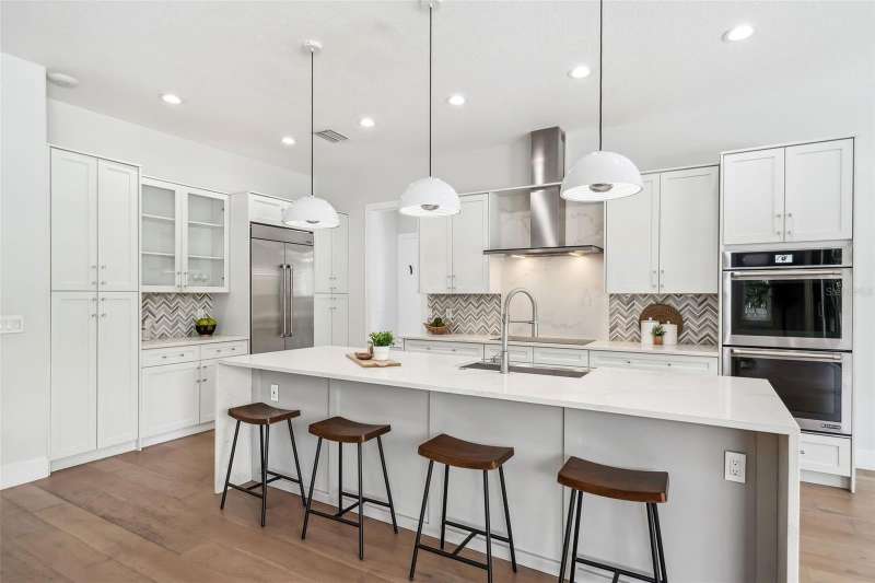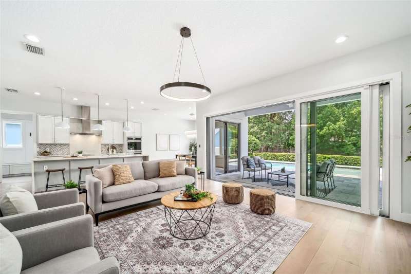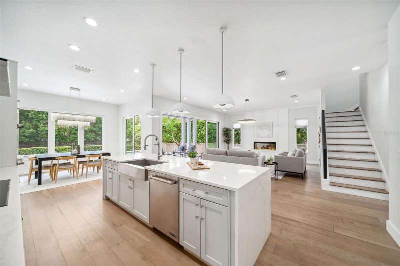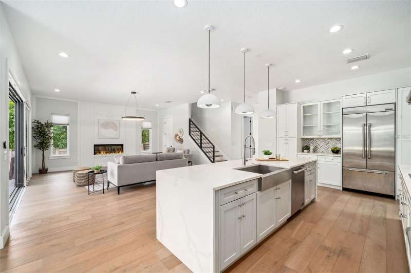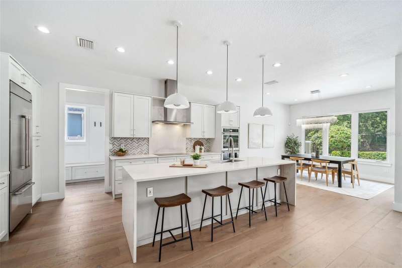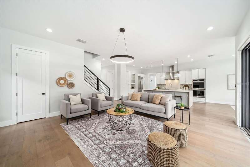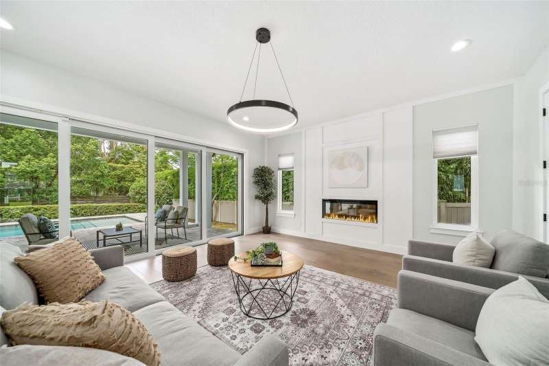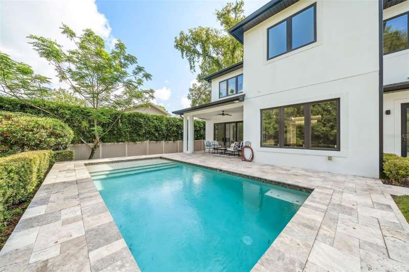 Discover this exceptional custom-designed modern pool home, ideally situated on a quiet street in Winter Park. This spacious residence offers 5 bedrooms, 4.5 bathrooms, and a large upstairs loft—providing the perfect blend of luxury, comfort, and functionality. From the moment you enter, you'll be captivated by the abundance of natural light and stunning hardwood floors that flow throughout the main level and continue upstairs into the loft and primary suite. The thoughtfully designed floor plan includes a downstairs bedroom and full bath, ideal for guests, in-laws, or a private home office. Designed with the entertainer in mind, the gourmet kitchen is a true showstopper—featuring quartz countertops, an oversized island, Jenn Air appliances including a double oven, and generous cabinet space. A large butler’s pantry with an additional sink offers even more storage and prep space. Seamlessly transition from indoor to outdoor living with the sliding glass doors that open to a covered lanai, private pool, and expansive fenced in backyard—perfect for relaxing or hosting gatherings year-round. Upstairs, the luxurious primary suite includes a walk-in closet and a spa-like bathroom with dual sinks, a soaking tub, and a separate walk-in shower. Three additional bedrooms, two full bathrooms, and a spacious laundry room with more storage complete the upper level. Additional features include a dedicated mudroom with built-in bench seating and storage, and an air-conditioned two-car garage with insulated doors and epoxy floors. All of this, just minutes from the Winter Park Racquet Club, Park Avenue’s boutique shopping and dining, and top-rated schools: Dommerich Elementary, Maitland Middle, and Winter Park High. Don’t miss this rare opportunity to own a one-of-a-kind home in one of Central Florida’s premier neighborhoods.