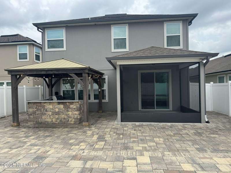 Charming two-story A-Frame patio home featuring a gourmet kitchen with island, breakfast bar, nook, pantry, and full appliance package. Primary suite offers walk-in closet and spa-style bath with tub and separate shower. Enjoy outdoor living with a screened patio, covered porch, gazebo, outdoor kitchen, and fully fenced yard with sprinklers. Community amenities include fitness center, pool, playground, tennis courts, sidewalks, and street lights. Attached garage, smart home features, and energy-efficient windows and insulation complete this move-in ready home. Fox Creek is conveniently located near the newly constructed Florida First Coast Highway, 1-295, 1-10 and 1-95 making it a short drive to all of Jacksonville. Cecil Commerce Center, world class healthcare, downtown Jacksonville, the Town Center and NAS JAX are all just minutes away. With low HOA fees, no CDD Fees and great amenities