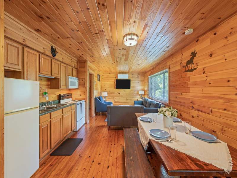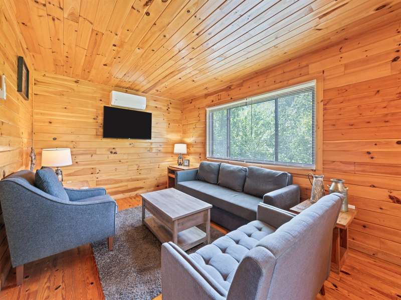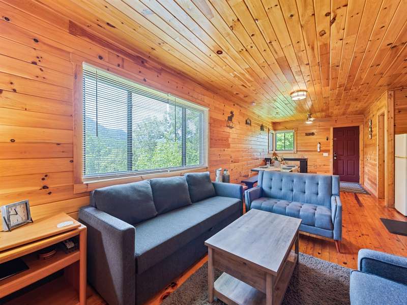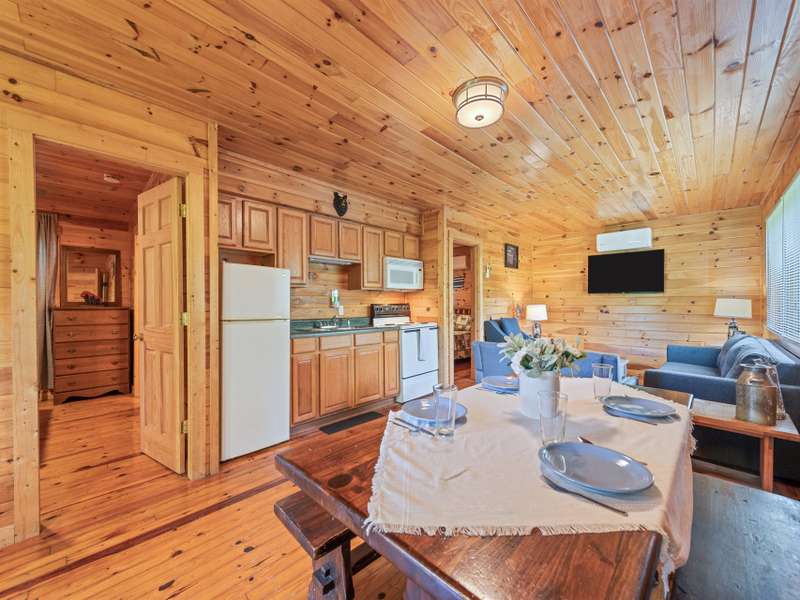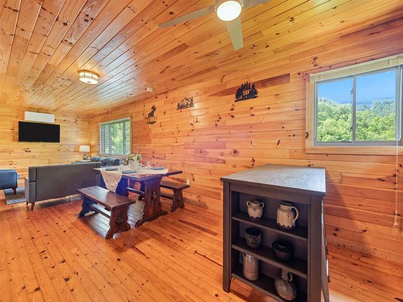This rustic Bryson City mountain cabin is just what you're searching for! It's a serene get-away and a funadventure - convenient, intimate, and comfortable in all seasons. With the warm, tongue-and-groove woodinterior, you feel right at home reading, playing board games, entertaining, and gathering together. Within in the past 4 years: new metal roof; mini-splits installed to improve cabin as an "all-season" cabin; updated plumbing; new insulation on plumbing with heat wrap; installed new vinyl plank flooring in bathroom; new faucets in the kitchen & bathroom sinks; trimmed trees for better view. Split bedroom and no-fuss maintenance makes this cabin ideal for everyone. Minutes from the NOC, Fontana Lake, GSMRR, Cherokee Casino, hiking trails, fishing, dining, shopping, boating, and much more. Take advantage of the Resort's amenities - a fitness center, swimming pool, game room, restaurant/bar, and more. STRs allowed, but no rental history; septic records requested.